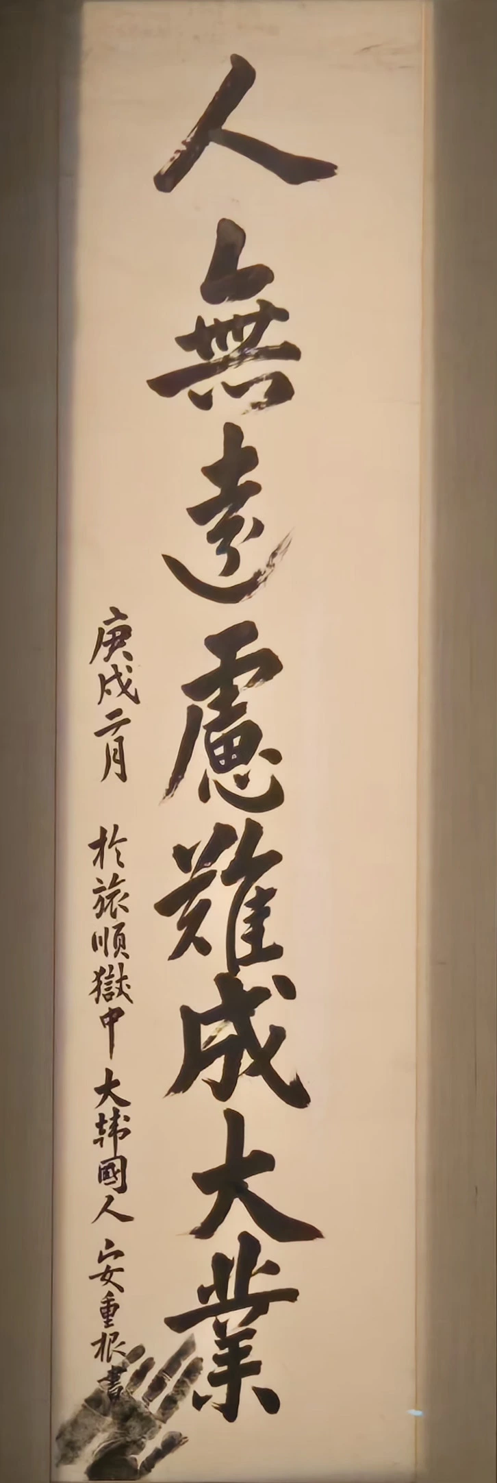 1905년 을사늑약과 1907년 정미7조약이 체결되어 나라가 위기에 처하자 안중근 의사는 독립운동에 투신했습니다. 안중근 의사의 글씨에는 교육가로서, 의병으로서, 장부로서, 지사로서 위태로운 시대를 극복하려 했던 굳건한 마음이 녹아 있습니다.