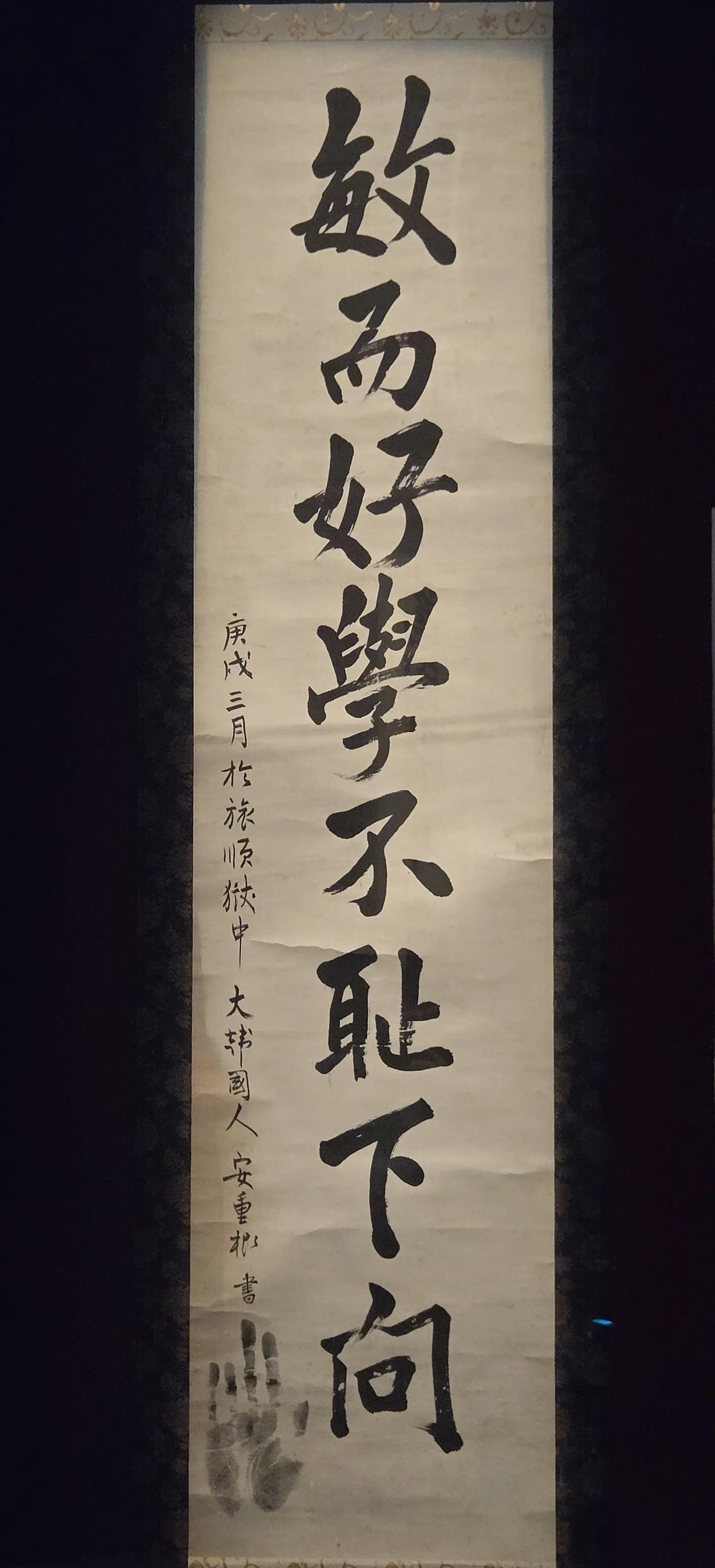 독립운동가 안중근 의사의 삶은 교육을 중시하고 신앙심이 깊었던 가풍에 그 뿌리를 두고 있습니다. 안중근 의사의 글씨에서 안중근 의사의 교육에 대한 가치관과 천주교인으로서의 신앙심을 엿볼 수 있습니다.