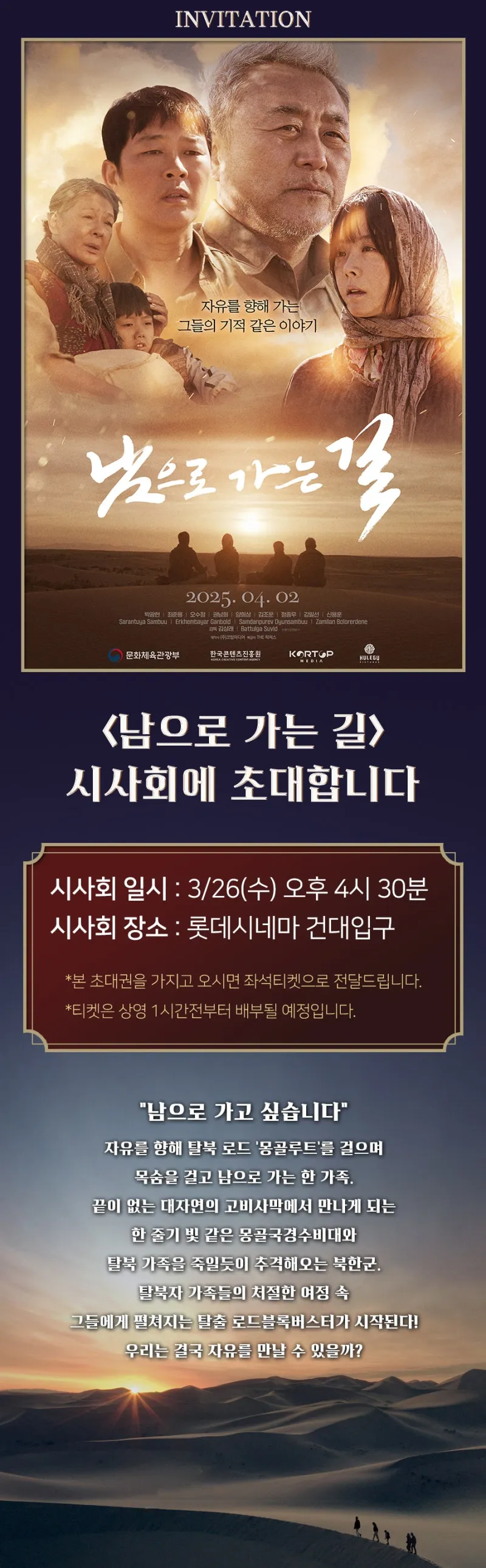 영화 <남으로 가는 길>은 오는 4월 2일 개봉되어 관객들과 만날 예정이다.