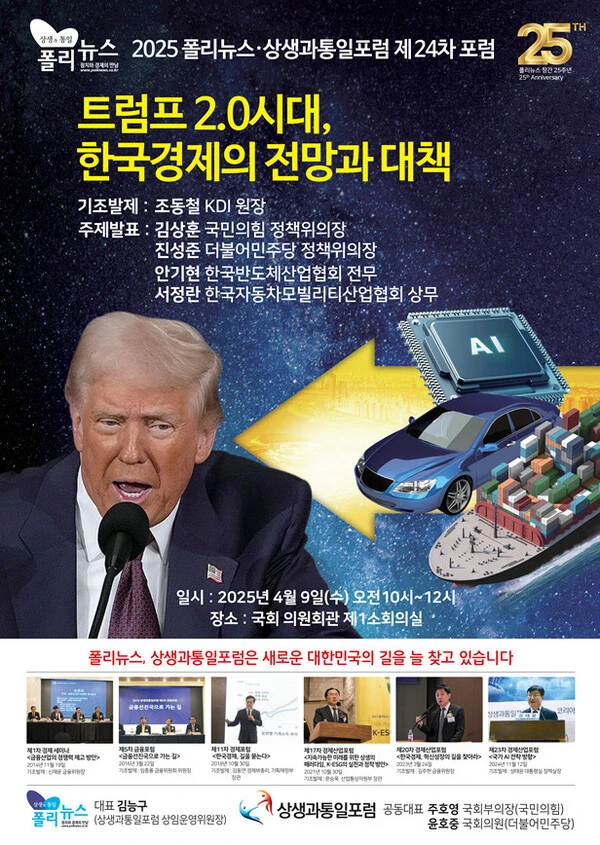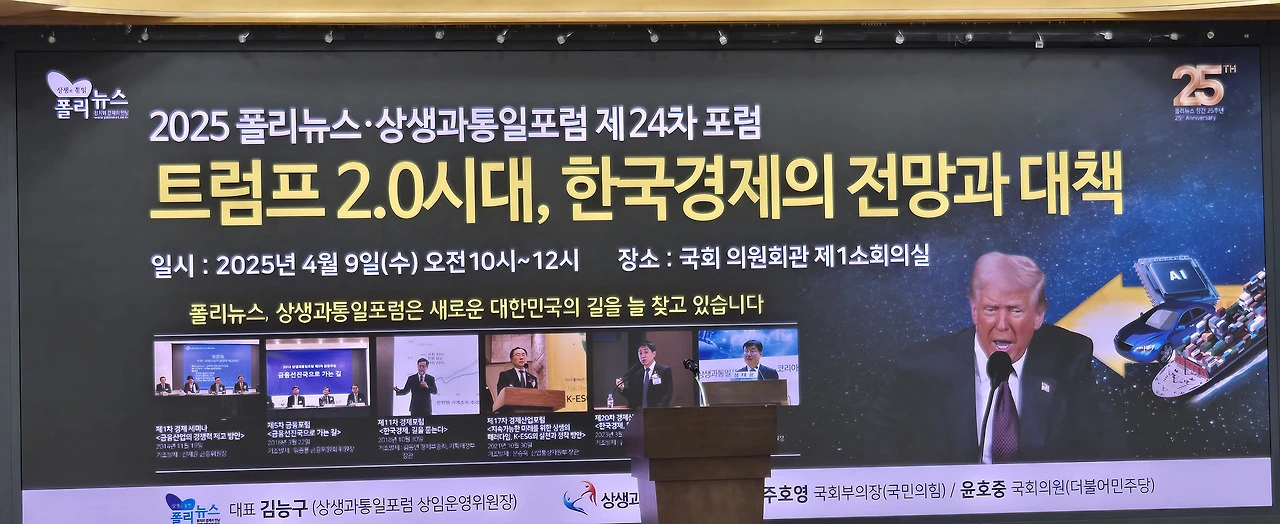 [2025 폴리뉴스·상생과통일포럼 제24차 포럼] ‘트럼프 2.0시대’ 산업별 대응 전략과 입법 방향 모색… 국회의원·기업·각계인사 참석 성료
