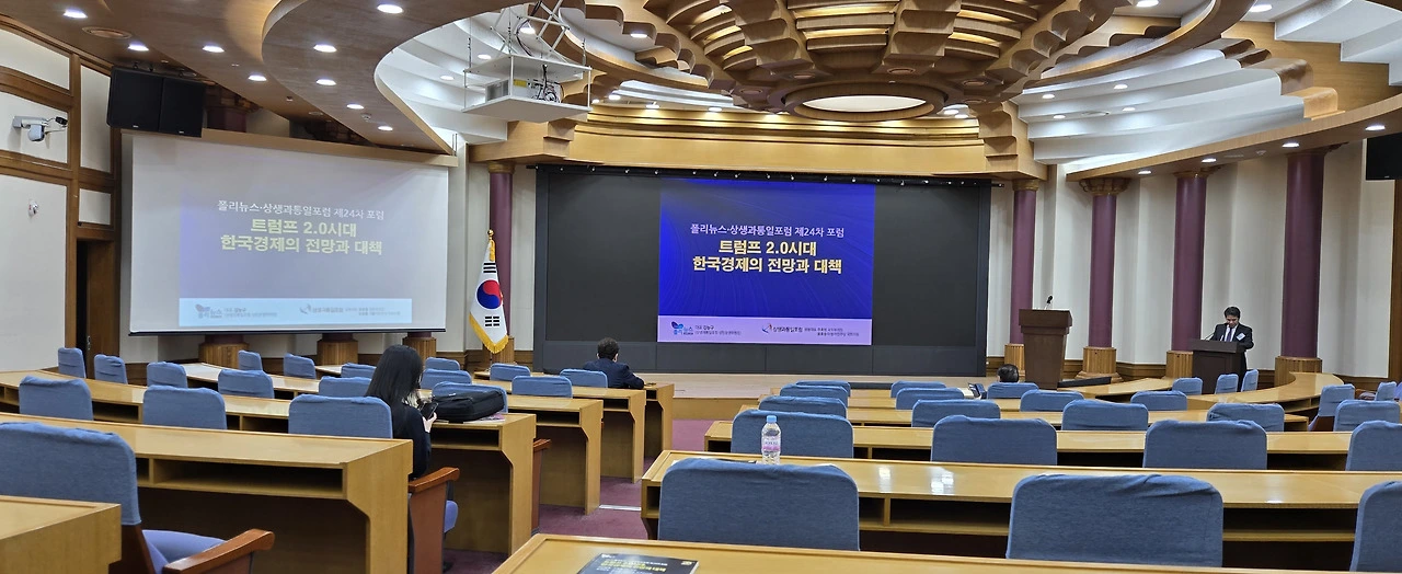 이번 포럼은 상생의 시대의 리더십을 화두로 던지며 출범한 ‘상생과통일포럼’과 정치와 경제의 만남을 모토로 정론직필에 최선을 다하는 ‘폴리뉴스’가 ‘트럼프 2.0시대, 한국경제의 전망과 대응방안‘이라는 주제로 토론회를 준비했다.
