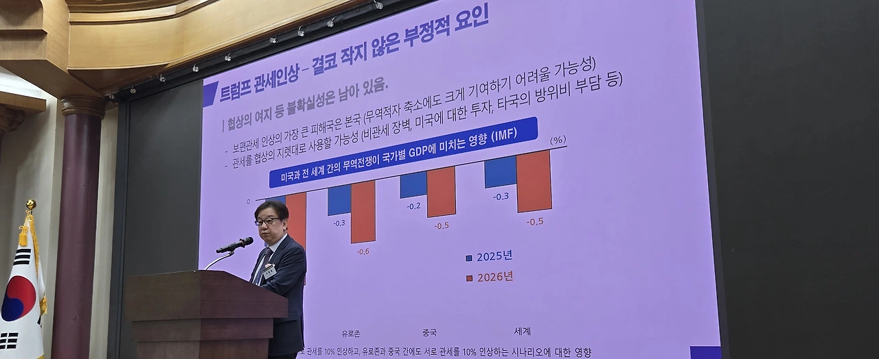 미국의 25% 상호관세에 대해서 조 원장은 “단순히 수출 감소의 문제가 아니라, 기업 투자와 글로벌 공급망 안정성 전반에 걸쳐 부정적 영향을 미칠 수 있다”고 우려했다. 그는 “현재 한국의 수출 중 약 18.6%가 미국에 집중돼 있는 점을 고려하면, 타격은 결코 작지 않을 것”이라며, “일부 산업군에서는 관세로 인한 수출 가격 경쟁력 저하가 투자 위축으로도 이어질 수 있다”고 경고했다.