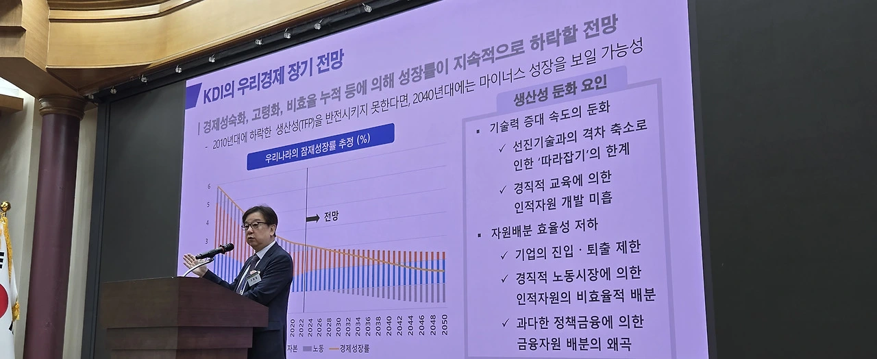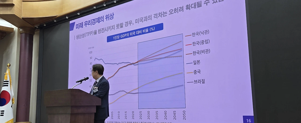 그러나 본질적인 문제는 국내 경제 내부에 있다고 진단했다. 그는 “우리 경제는 잠재성장률이 장기적으로 하락세를 지속해왔으며, 생산성 정체와 기술혁신 지체가 구조적으로 누적돼 있다”며 “이런 상태에서 외부 충격이 오면 그 충격을 회복할 체력이 없다”고 말했다.