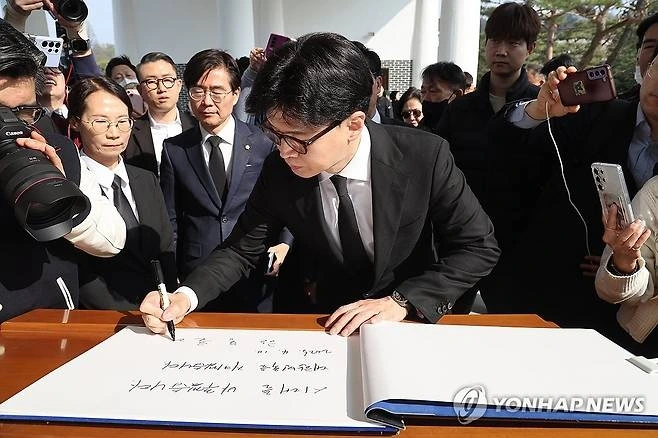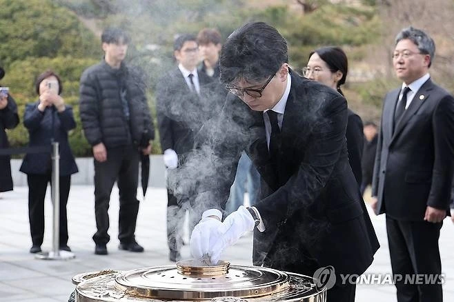 국민의힘 한동훈 전 대표의 제21대 대통령선거 출마 선언 기자회견 후 국립서울현충원 참배