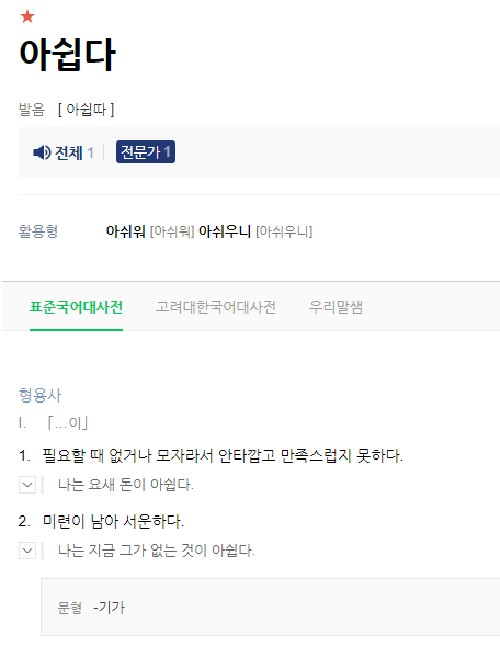 시원섭섭하다 뜻풀이에 나온 '섭섭하다'와 '아쉽다'는 건 구체적으로 어떤 느낌일까? 궁금해서 연이어 찾아보니 다음과 같았다.