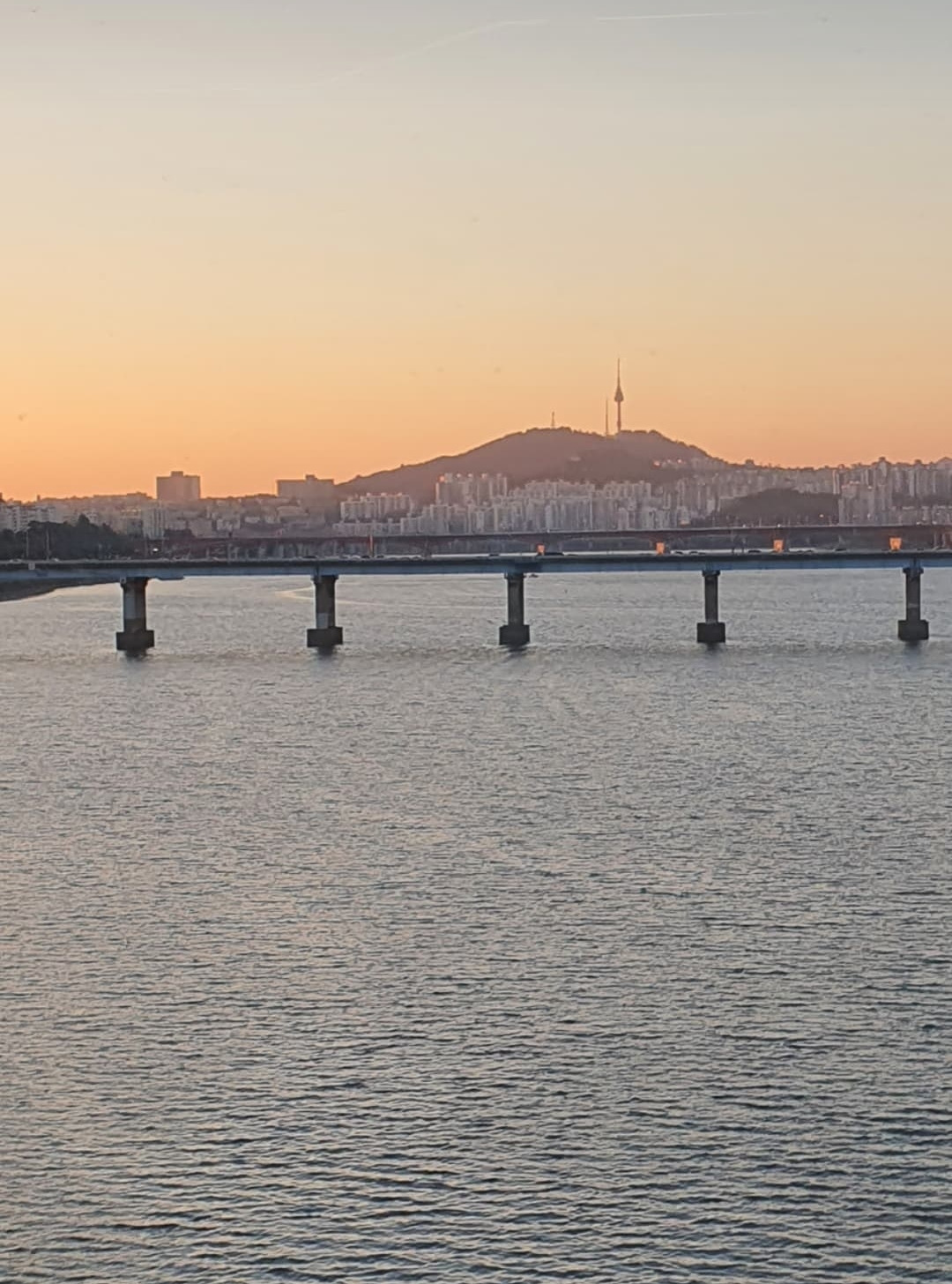 하늘은 쪽빛처럼 파란데 듬성듬성 알맞게 구름이 피어 있을 때, 강 위로 흐르는 윤슬이 눈이 부실 정도로 풍성할 때, 주황에서 연보랏빛으로 색이 번지는 노을 하늘과 한강을 함께 볼 때면 황홀하기까지 하다.