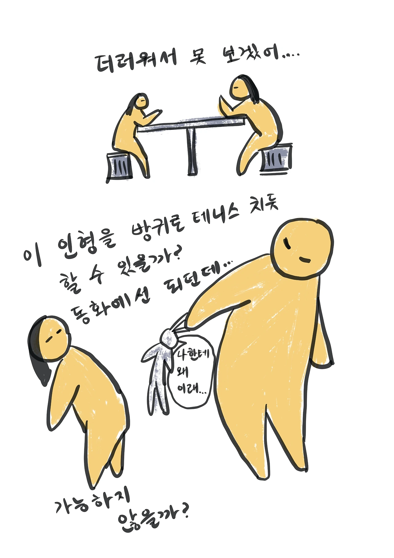 둘째는 아니라고 소리 지른다.