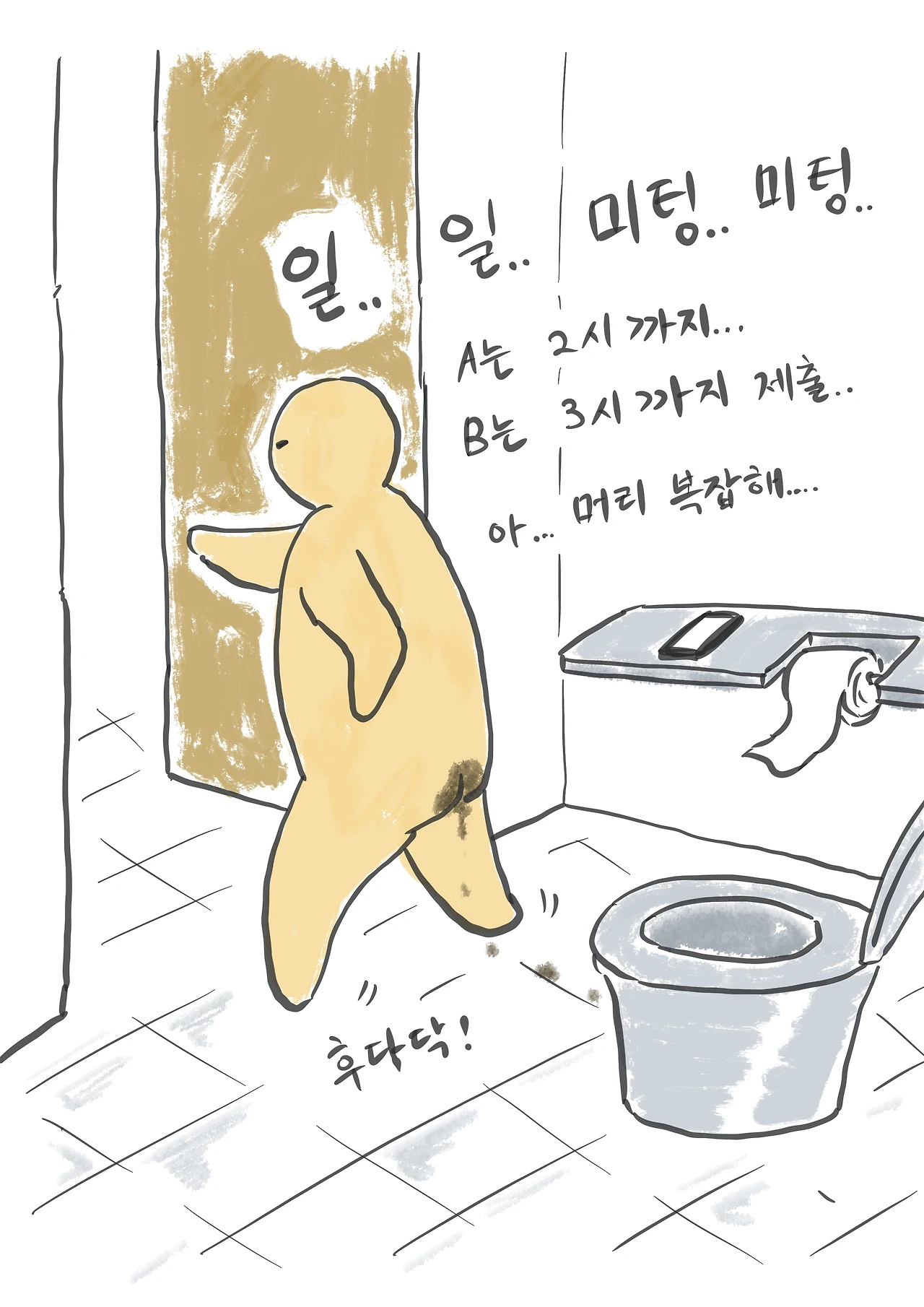 후다닥 다시 화장실로 뛰어갔다.
