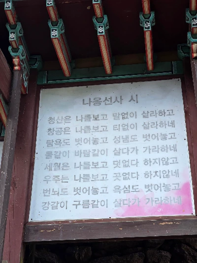 나옹선사의 시가 걸려있다.