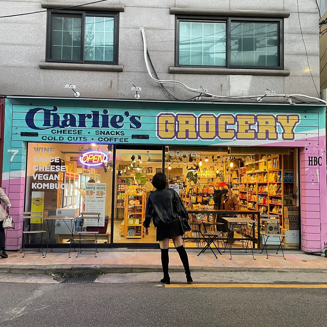 낮에는 반팔을 입어도 괜찮을 정도로 기온이 높았는데 점차 추위가 느껴질 정도로 기온이 내려갔다. 우리는 실내 '칵테일바'로 향했다. 해방촌을 검색하며 꼭 가볼 곳으로 저장해 두었던 '헤엄'을 찾아갔는데, 아쉽게도 긴급 휴일이라 다른 곳을 찾아야 했다. 헤엄은 인스타로 공지하지 않는 경우가 있으니 문자나 네이버로 예약을 해야 한다고 (아마도) 사장님께서 서성이는 우리에게 얘기해 주셨다. 다음 방문 전에 미리 예약을 해야 한다는 것을 알게 된 것은 행운이었다. 헤엄을 찾아가는 길에 우리는 즉흥으로 '인생네컷'도 찍었고(둘 다 인생 처음이었다. 학창 시절 스티커 사진 찍은 이후로), 식료품점도 방문했고, 화영연화 분위기의 장소 앞을 서성이며 느낌 있는 사진을 찍었다.