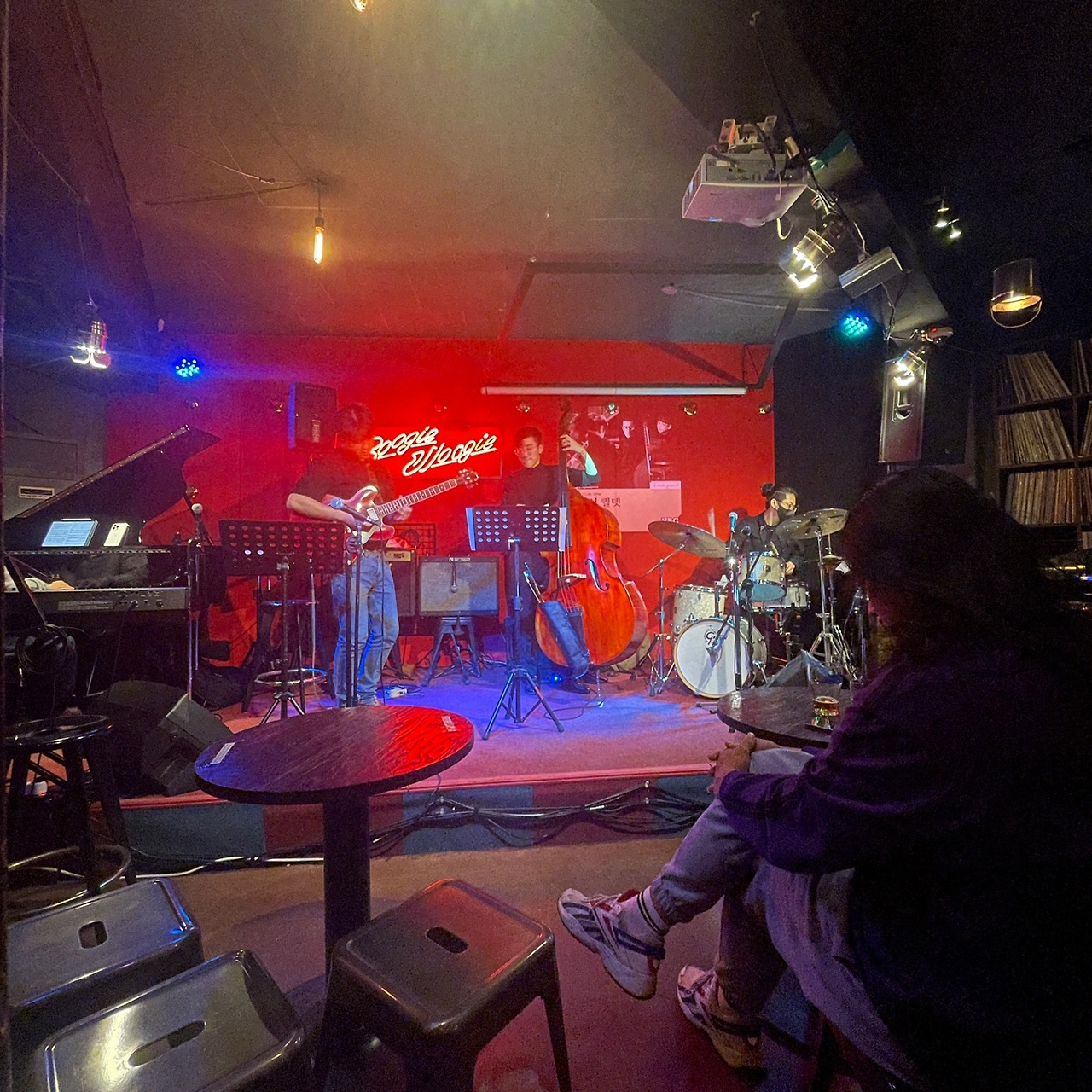 영화 〈소울〉을 여러 번 볼 정도로 좋아하는데, 라이브로 재즈를 들으니 '즉흥성'이라는 매력이 추가되어 재즈가 더 좋아졌다. 가사 없이 연주하는 팀의 공연을 연달아 보았는데 가사가 없는 것도 좋았다. 그리고 무대의 콘트라베이스를 든 외국인이 아까 록시를 가면서 횡단보도에서 잠깐 마주쳤던 분이라는 것을 알게 되었다. 우리는 이곳에 올 운명이었나 보다.