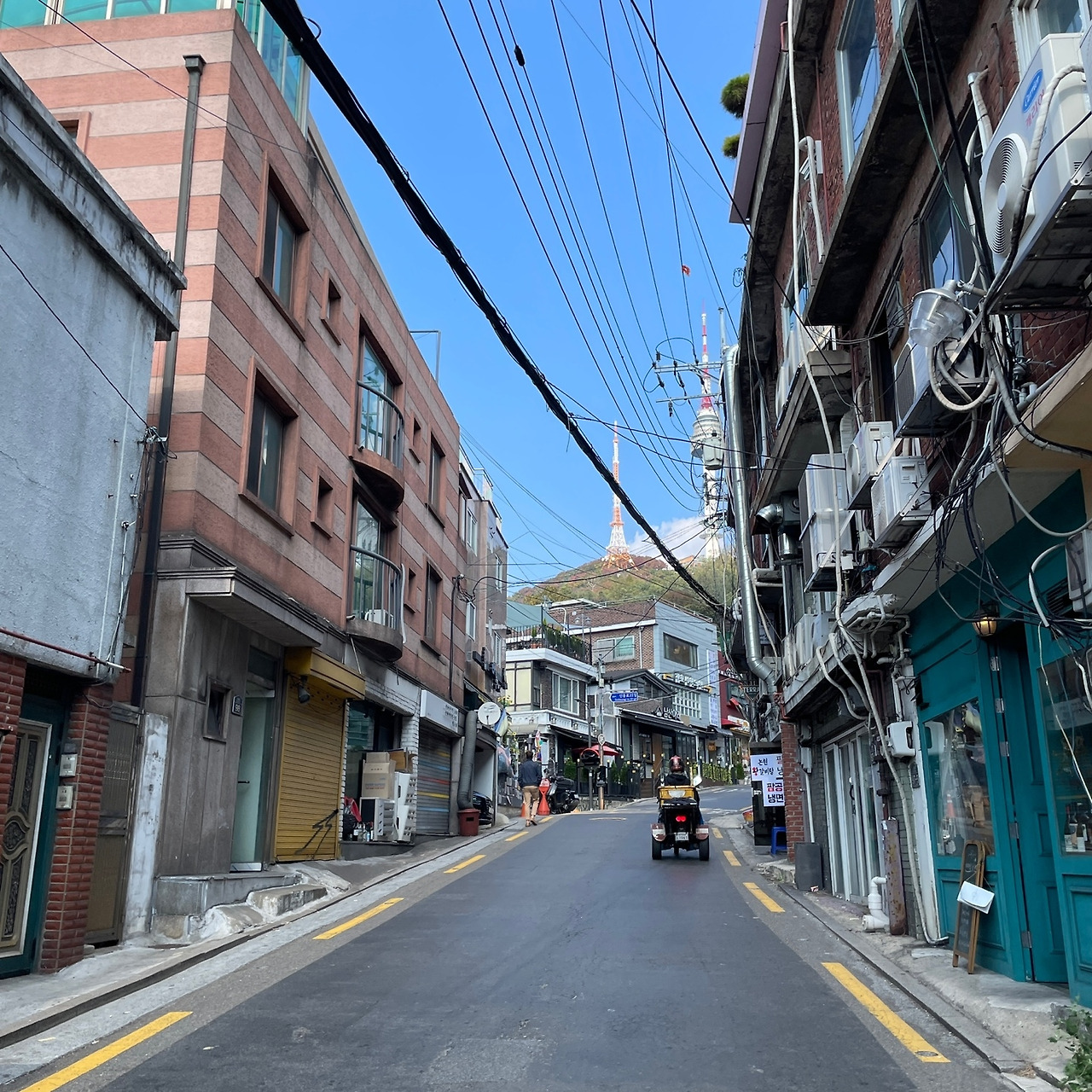 파란 하늘과 산등성이, 골목 양쪽으로 줄지어 있는 새로 생긴 가게와 오래된 가게, 상가와 주거지, 근거리의 다닥다닥 붙은 작은 방들과 원거리에 홀로 선 N서울타워(난 아직도 남산타워라는 이름이 더 익숙하고 정겹다, 그러니 앞으로는 남산타워라 칭하겠다). 해방촌에는 이질적인 존재들이 한 시야에 담길 정도로 공존하며 대립하지 않고 있었다. 이는 묘하게 정감 있으면서도 힙한 분위기를 풍겼다. 해방촌이라는 이름의 유래는 모르지만, 내 마음대로 가설 중 하나는 '용도에 다른 경계 따위에서 해방한 마을'이라는 것이다.