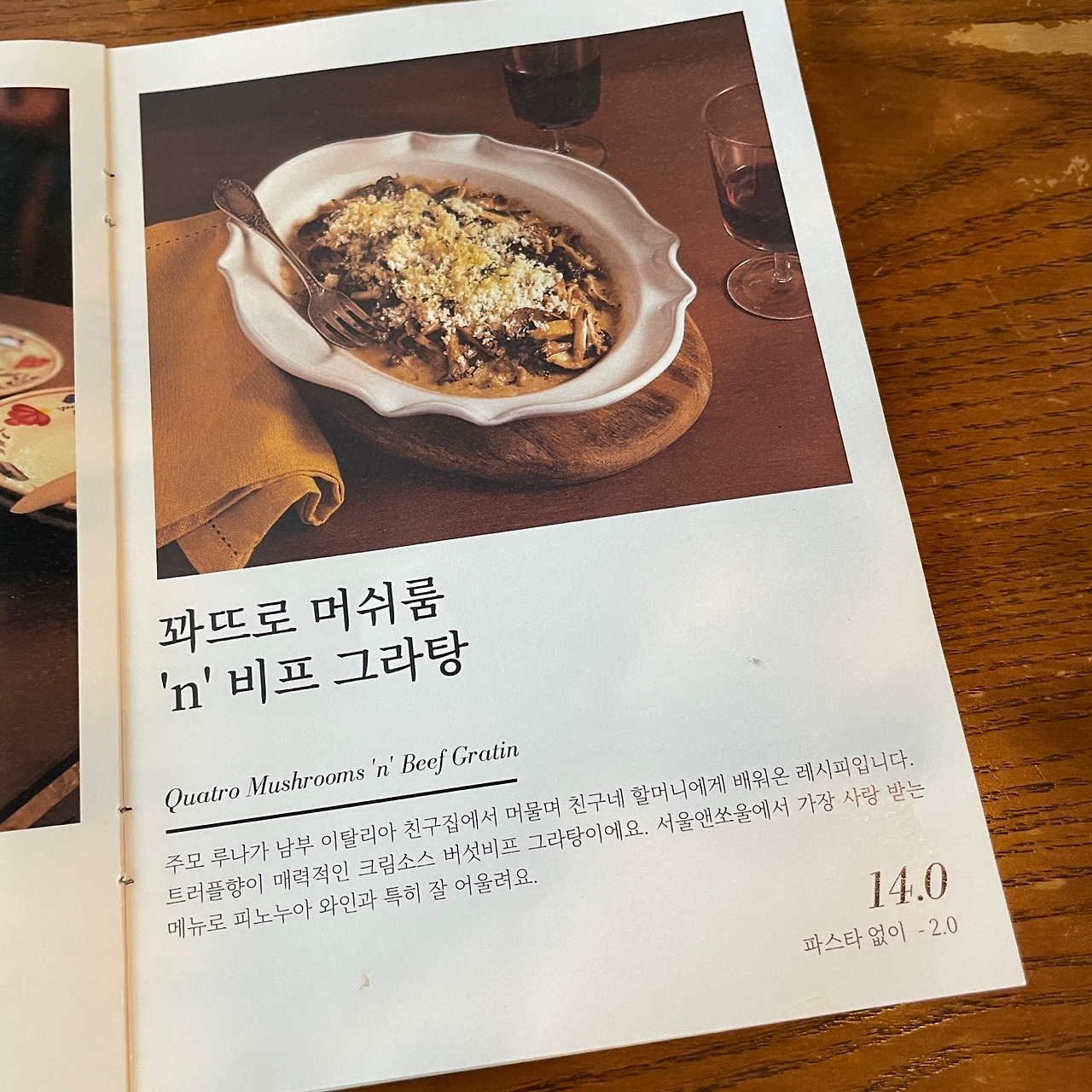 '서울 앤 쏘울'의 메뉴는 건강하면서 흔치 않은 음식들로 구성되었다. 1차로 감자전과 비프 그라탕(파스타 없이), 논알코올음료를 시켰다. 맛은 말해 모해. 2차로는 마라 떡볶이와 글라스 와인을 시켰다. 양도 맛도 가격도 완벽하면서 적당했다. 게다가 서울페이 결제가 가능했다. 해방촌 방문을 위해 미리 용산구 서울페이를 사두었는데 은근 서울페이가 안 되는 곳이 많았던지라, 반가웠다.