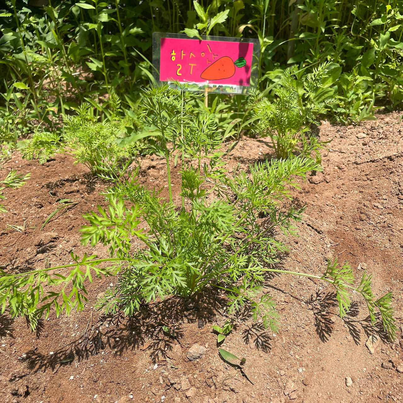 인생 처음 텃밭을 가꾸게 되었다. 과목이 생명과학이면 흔히 식물을 잘 키우고 좋아할 거라 생각하지만 광합성의 원리를 아는 것과 실제 식물을 키우는 일을 즐기는 것은 별개이다. 다른 취미에 밀려오긴 했으나 식물은 물과 이산화탄소, 적당한 무기염류만 주어지면 스스로의 가치를 쑥쑥 올리는 존재라는 점에서, 작물 재배는 한번쯤 해보고 싶은 일이었다. 그리고 드디어 그것을 실현할 수 있는 기회가 주어졌다. 새로 옮긴 학교에서 텃밭을 얻게 된 것이다. 부족한 열정 탓에 검색 조차 하지 않고 왔다 갔다 하며 보았던 학교 근처 모종 가게로 향했다. 여러 모종 중에서 ‘당근’을 선택했다. 모종 10개의 가격은 단돈 2000원. 새삼 ‘농부의 일이란 무에서 유를 창조하는 것에 가깝구나. 잘하면 정말 가치 창출 끝판왕이겠구나.’라는 생각이 들었다. 그렇게 당근 씨앗이 아닌 모종을 사서 눈대중으로 간격을 두고 대충 심었다. 주변 텃밭을 보니 작물 사이 간격이 일정했고 흙의 수분 소실을 막을 수 있는 비닐도 씌워져 있었다. 열정 넘치는 텃밭러들 사이에서 시작이 반이라는 마음으로 그저 당근 모종을 심기만 했다. 그마저도 호미와 비료 일부를 동료 교사분에게 얻어서 가능했다.
