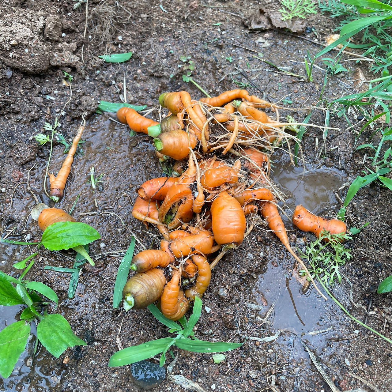 후에 공부를 해보니 당근을 심을 때 더 봉분을 쌓아주고 당근 사이 간격을 더 두었어야 했으며 비료도 더 많이 주어야 했다. 볼품없이 상품성 없는 당근이 나왔지만 첫 수확물에 만족했다. 처음 모종에서 실 같던 뿌리가 손가락 정도로는 커줬으니! 기대가 없었기에 실망보다는 만족감과 식물이라는 생명체에 대한 경이로움이 더 컸다.