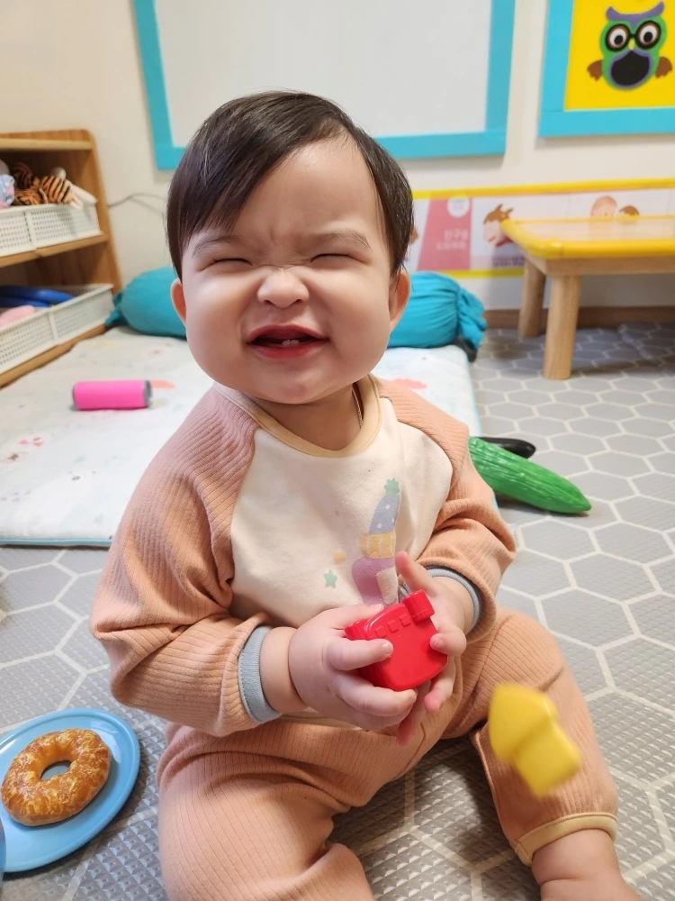우리 아린이가 누가 가르치지도 않았는데 코 찡긋 눈이 사라져라 웃고 크게 까르르 웃기 때문일까?