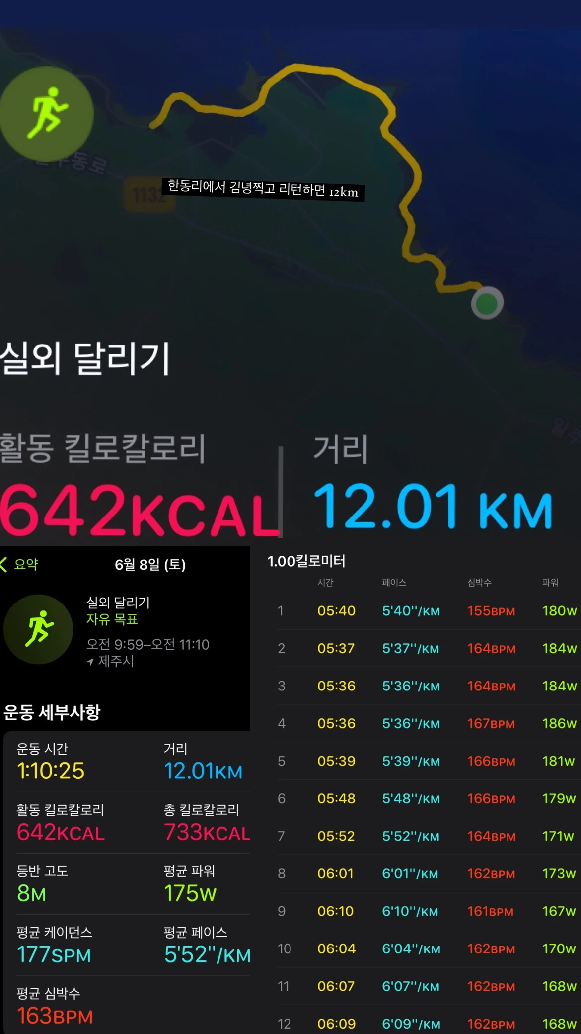 6일에는 하체 운동의 여파로 4km만 뛰었다. 대신 종달리까지 10km 이상을 걸어갔다.