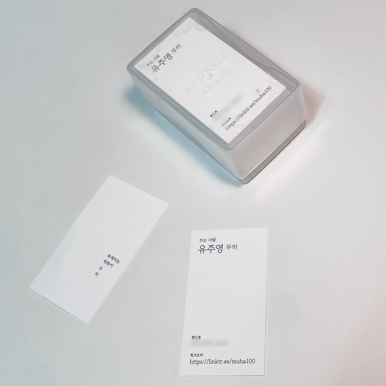 마침, 작가 명함이 완성되었다. 교사라는 직업 특성상 명함을 만들 필요가 없었지만 ‘작가’ 정체성만을 담았다. 소설을 쓰다가 만난 출판사 문학팀 편집자님의 권유로 만들었다. 글을 쓰다가 만난 사람들은 덕업일치가 된 경우를 자주 본다. 편집자님이 소개해준 디자이너 또한 현업은 편집자였으나 부업이 디자이너였다. 책이 좋아서 편집자를 직업으로 삼고, 책을 디자인하거나 쓰는 일까지로도 업이 확장되는 것이다. 아무도 책을 사지 않고 읽지 않는 시대라지만 그럼에도 책을 사서 읽는 사람들이 결국 쓰는 사람도 된다. 시쌤은 첫 수업 마지막에 20분 동안 일기를 쓰도록 했다. 매 수업마다 일기 쓰는 시간을 줄 것이며 여기서 단어를 끄집어 올려 마지막 차시에는 본인만의 시를 써볼 것이라고 했다. 지금까지 써온 일기의 단어들은 에세이가 되었는데, 이제는 시가 될 수도 있겠다는 설렘이 생겼다.