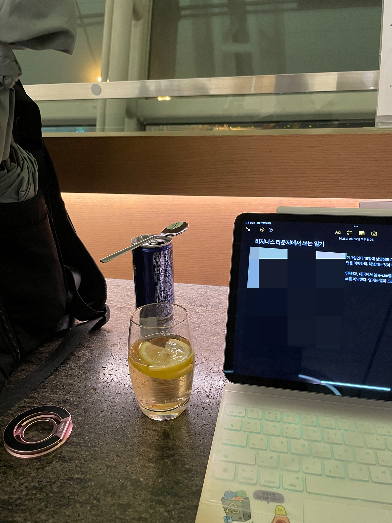 그렇게 가족과도 작별인사를 했다. 라운지로 가서 가볍게 식사를 하고 위스키 존으로 가서 하이볼을 말고 아이패드와 일기장을 꺼냈다.