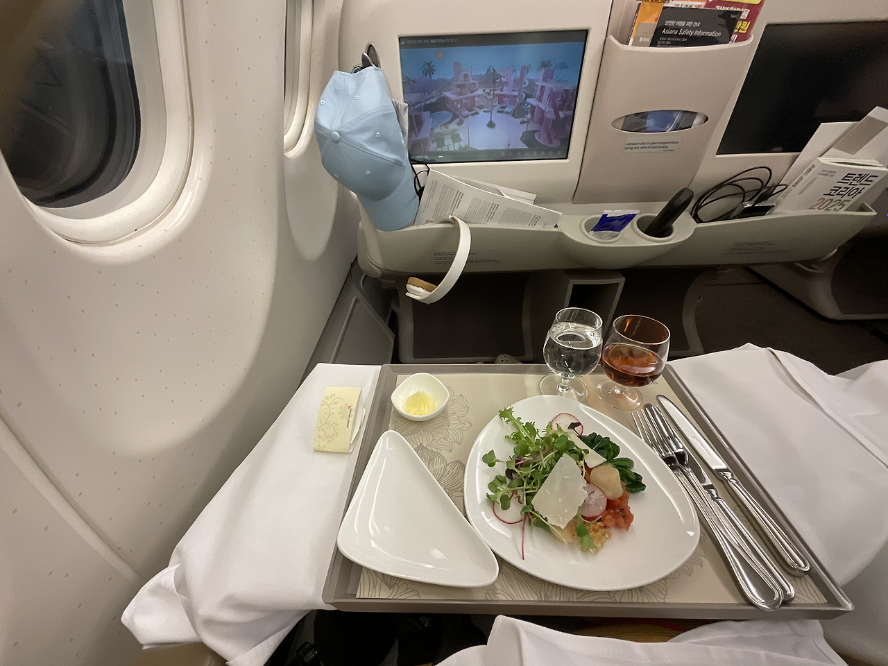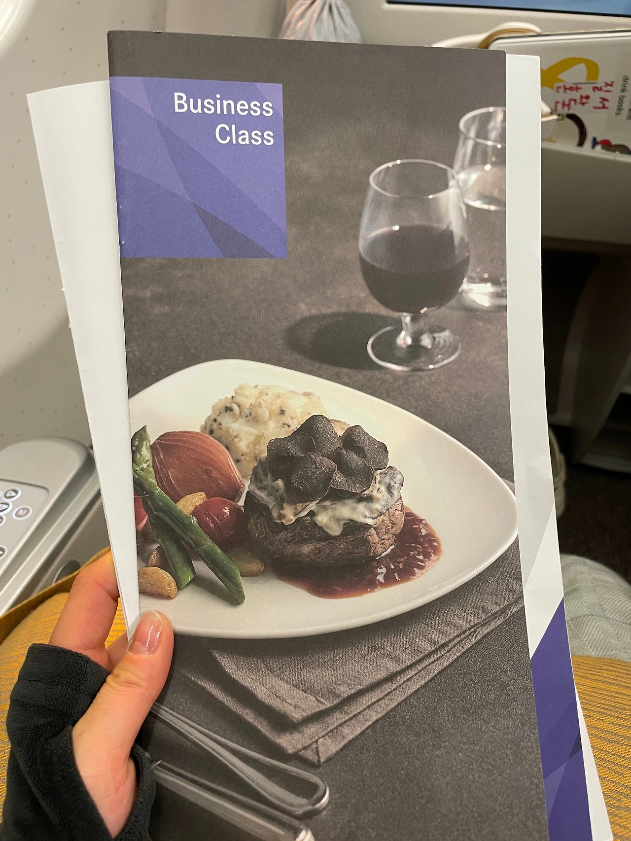 한국에서 태국 학교로 붙여놓은 두 박스의 짐을 제외하고도, 무게를 살짝 초과한 이민 가방 하나, 30인치 캐리어 하나, 꽉 찬 손가방 하나와 배낭이 있었기 때문에 위탁수하물을 많이 실을 수 있는 비즈니스를 탔다. 재외교사 카페에서도 대부분 이 방법을 추천하시기도 했기에 어쩌다 생애 첫 비즈니스를 타게 되었다.
