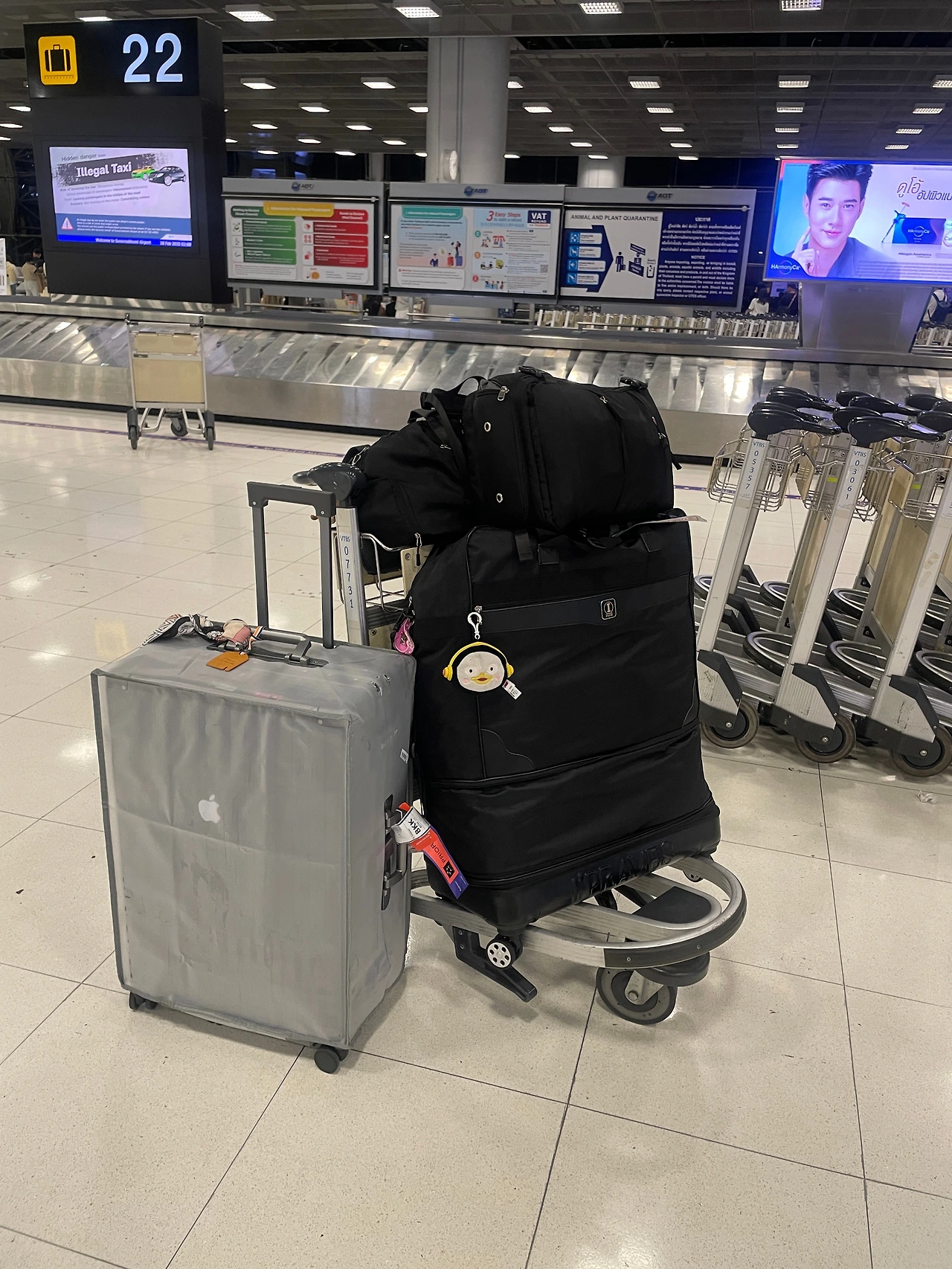 * 비행기 (아시아나) 위탁 수하물의 가로, 세로, 높이 합친 값은 158cm를 넘으면 안 된다 : 오늘은 아시아나 직원 분께서 내가 돌아오는 티켓도 없이 태국에 가게 된 다는 것을 아시고 ‘큰 짐’ 부치는 곳으로 이동시키되 초과 금액은 받지 않으셨다.