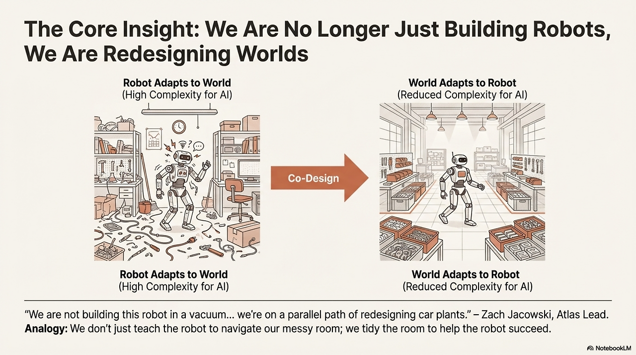 우리는 지금 로봇이 일상이 되어가는 '에이전트의 시대'를 맞이하고 있습니다. 이러한 변화는 이미 최신 자동차 공장에서 로봇이 실제 테스트를 받고 있는 모습으로 나타나고 있습니다. 하지만 단순히 인간이 일하던 기존 공장에 로봇을 그대로 투입하는 것만으로는 로봇이 가진 잠재적인 생산성을 100% 활용하기 어렵습니다. 인간을 위해 설계된 환경이 로봇에게는 오히려 비효율적인 장애물이 될 수 있기 때문입니다. 따라서 로봇의 성능을 극대화하기 위해서는 공장의 형태 자체가 로봇 친화적으로 바뀌어야 합니다.