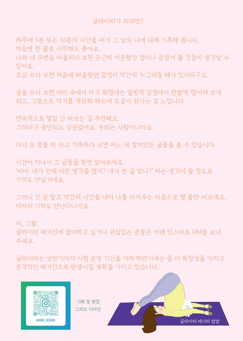 그래서 탄생한 나만의 잡지가 “글라이터” 입니다.