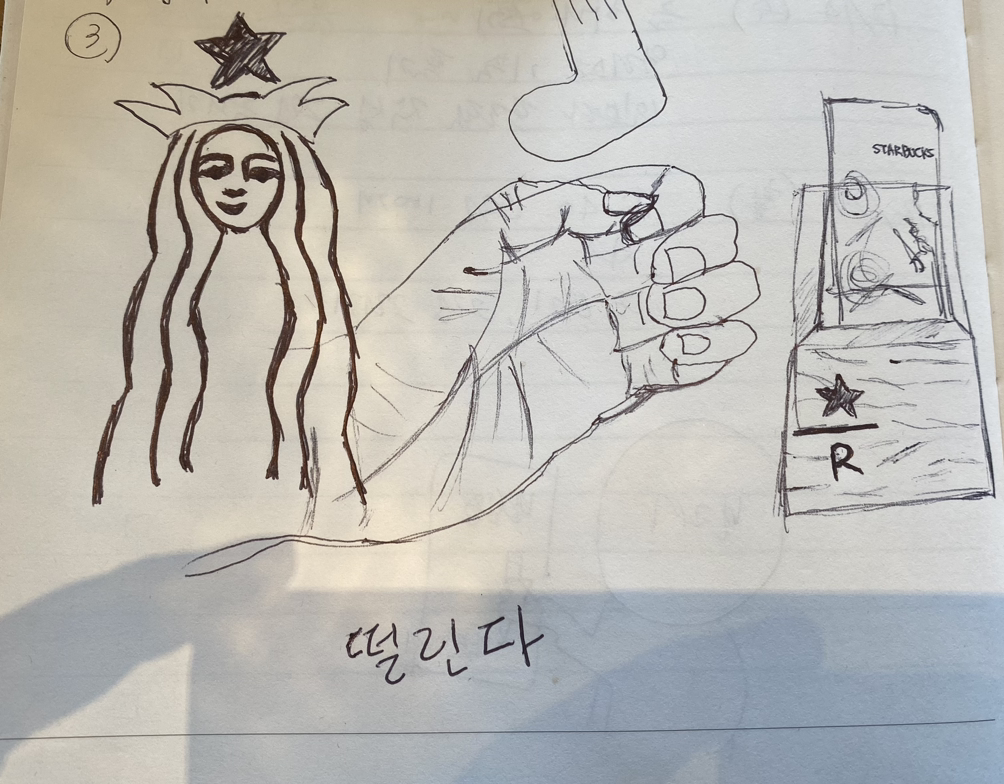 오늘 스타벅스에 나온 김에 종이 위에 볼펜을 들어 연습을 해봤다.