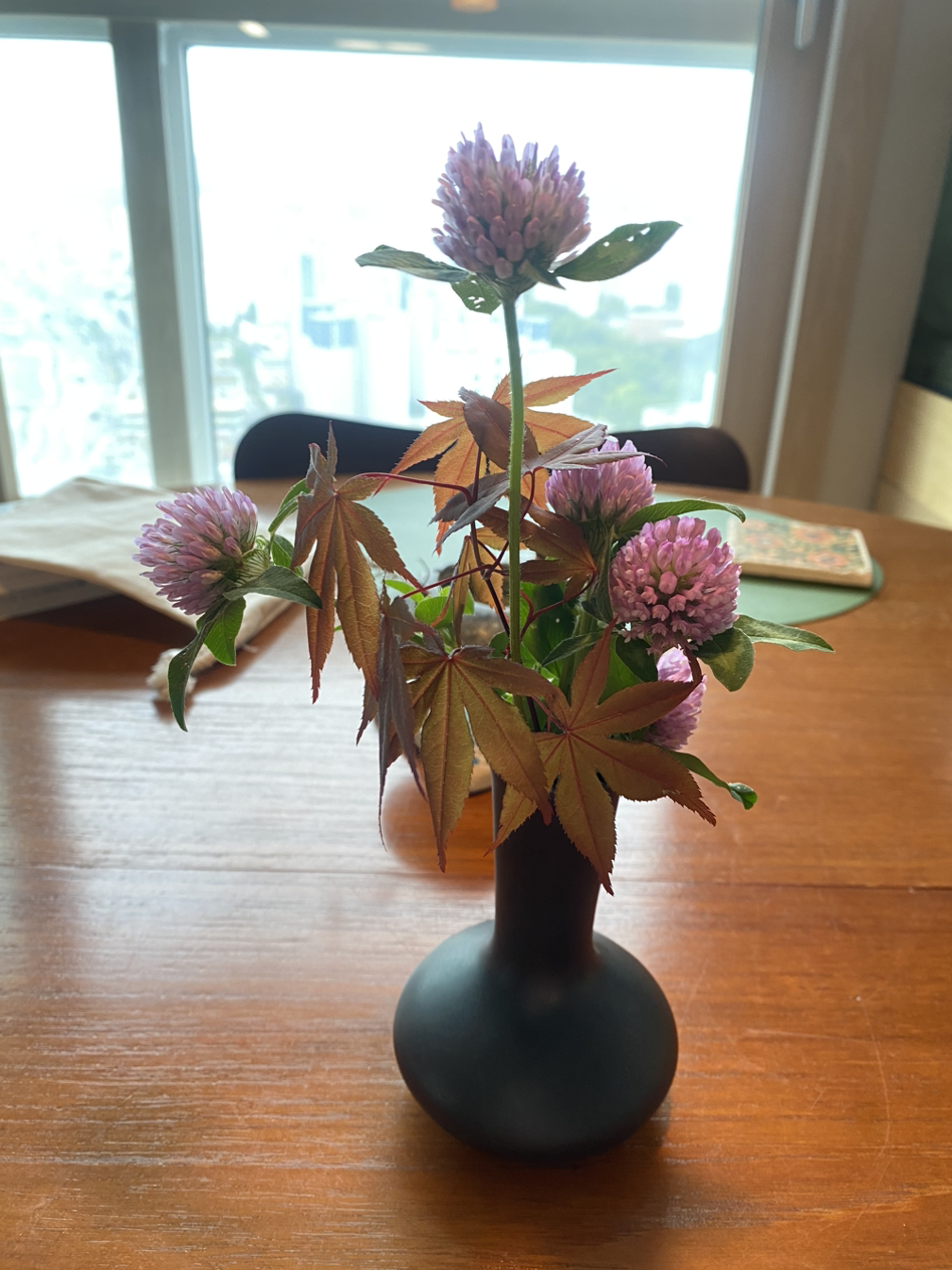 이제야 물이 화병 입구 끝까지 차오른다. 꺾어온 들꽃을 집어 넣어 식탁 위에 올려놓는다.
