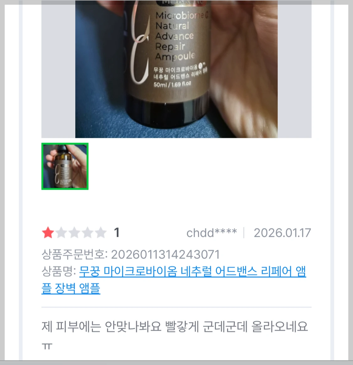 얼마 전 무꿍 장벽앰플을 무꿍스토어에서 구입 후 하루 만에 댓글로 남긴 케이스가 있었습니다.
