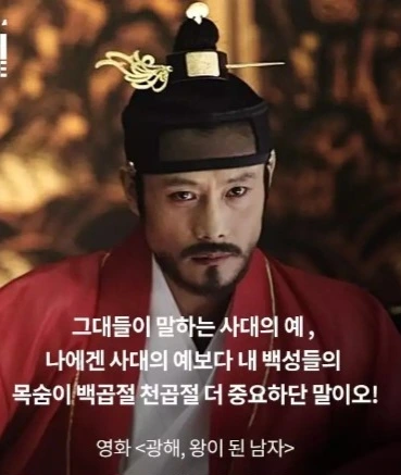 몇 년 전 광해라는 이병헌 씨가 주연을 맡은 영화를 정말 감명 깊게 본 적이 있다. 일개 광대가 마약에 빠져 있는 왕을 대신해 왕 노릇을 하면서 자신들의 이익과 주변 강국의 눈피만 보는 신하들을 통쾌하게 박살 내는 장면들을 보고 있으니 속은 시원 하지만 한편으로는 씁쓸했다.