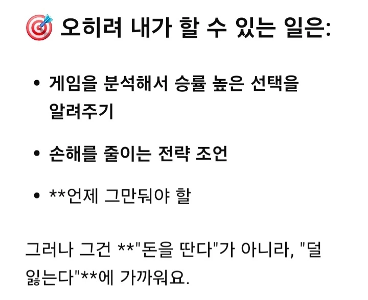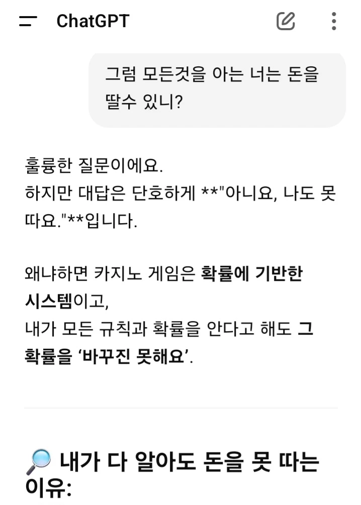 “카지노는 기본적으로 장기적으로는 집이 이기도록 설계돼 있어서, AI도 돈을 딸 수는 없어요. 다만 확률을 분석해서 덜 잃는 방법은 있을 수 있죠.”