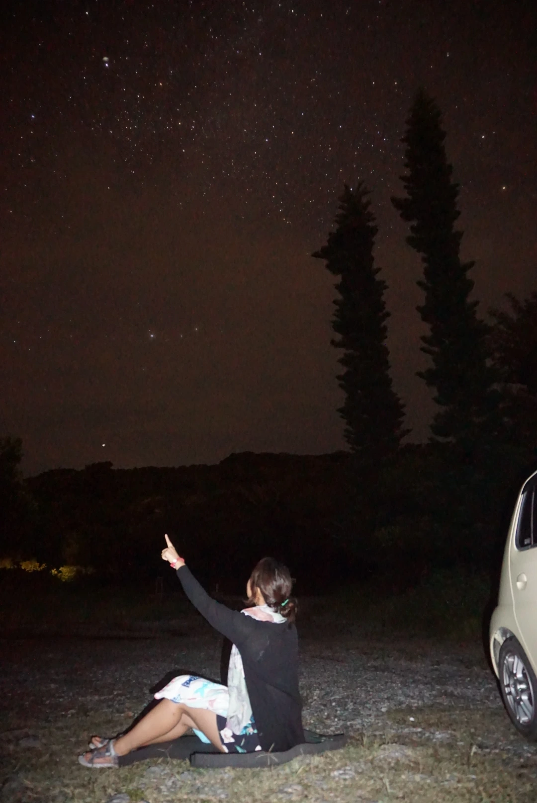 결국 뿡뿡이를 잠시 세워 밤하늘을 잠시 살펴본 후, 우리의 별보기 여행을 계속할지 말지 결정하기로 했다. 마침 도로 옆에 차를 댈만한 넓은 장소가 보였다.