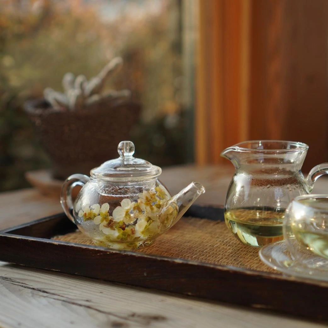사장님은 다도 식기를 조심스레 들고 와 앞에 앉았다. “아시겠지만, 차 내리는 방법을 보여드릴게요-” 먼저 매화꽃이 담긴 작은 유리 주전자에 뜨거운 물을 반쯤 따르고 20~30초 정도 기다려야 한다. 곧 20초의 정적이 예상되었지만, 그는 정적을 깰 이야기를 빠르게 찾아냈다. 마침 오늘 아침에 찻집의 앞마당에 핀 매화꽃을 발견했는데, 세어보니 딱 네 송이였다 말하곤 차 내리는 방법을 마저 설명했다. 차를 여덟 번 정도 우려먹을 수 있다는 말도 덧붙였다. 오늘 하루, 적어도 차가 여덟 번 우러나는 시간만큼의 여유가 내게 허락된 것 같았다.
