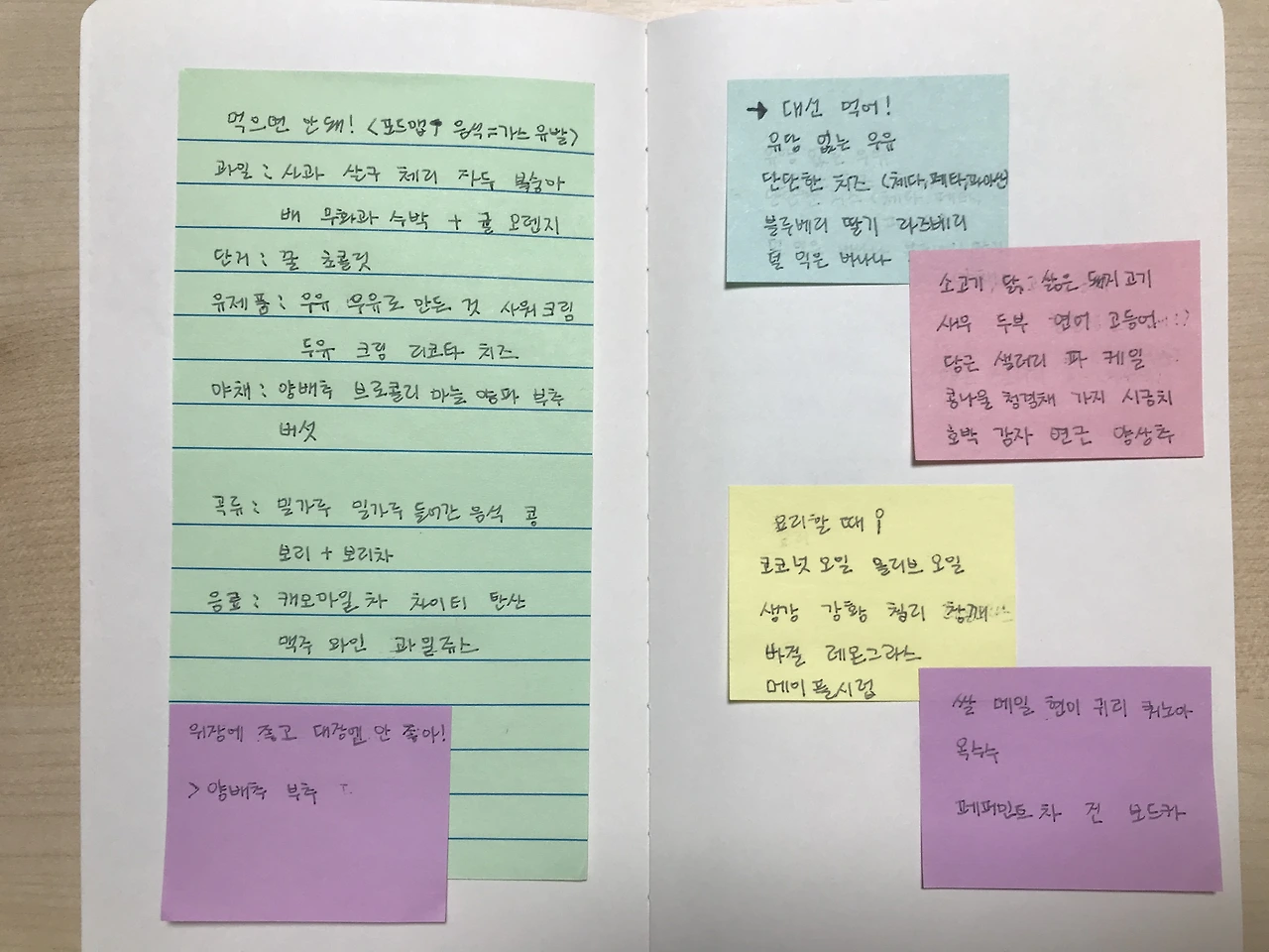애초에 역류성 식도염과 과민성 대장증후군을 동시에 갖고 있는 내가 먹을 수 있는 식재료도 많지 않다. 식초가 들어간 음식이나 신 과일을 먹으면 위산이 많이 분비되어 속이 쓰리고, 바나나나 유제품을 먹으면 장에 가스가 차 배가 부글부글거린다. 위엔 좋은데 대장엔 안 좋은 식재료도 있다. 내가 해야 할 건, 레시피 공부가 아니라 식재료 공부였다.