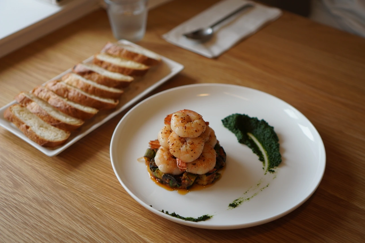 문어가 한주먹 들어간 칠리 오일 파스타, 수비드로 조리한 흑돼지 스테이크, 바게트에 바질페스토를 바르고 튀기듯 볶은 가지, 호박, 건포도와 구운 새우를 올려 먹는 새우 카포나타, 디저트로 크렘카라멜을 주문했다. 예상대로 모두 맛있었다. ‘먹는 행복이란 게 바로 이런 거구나’ 싶었다.