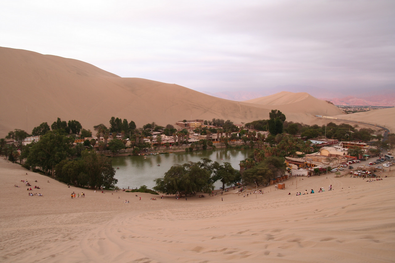 다음 날 공항에서 배웅하고 다시 이카로 향했다. 이전 페루 관련 글에서도 언급한 바와 같이 페루가 여행지로 좋은 이유는 오랜 전통과 역사, 유적과 함께 정글, 고산지, 사막 등 다양한 기후 특성을 가지고 있기 때문이다. 동쪽에서 오는 구름이 안데스 산맥을 넘지 못해 아마존으로 대표되는 밀림이 형성되어 있고 서쪽의 태평양 연안은 비가 내리지 않는 사막지대다. 그중 나스카와 이카가 관광지로 유명한데, 이카의 와카치나(Huacachina)라는 곳으로 행선지를 정했다. 소담스러운 오아시스 마을과 버기 투어(Buggy Tour)로 유명한 곳이다. 버기카를 타고 단단한 모래 능선을 스릴 넘치게 질주한 후 가장 높은 모래톱에 올라 샌드보드를 즐기며 가슴 탁 트이는 시간을 보냈다. 그리고 끝없이 펼쳐진 사막과 그 위로 떨어지는 석양이 콜라보로 자아내는 환상적인 풍경에 어두워질 때까지 푹 젖어 있었다.
