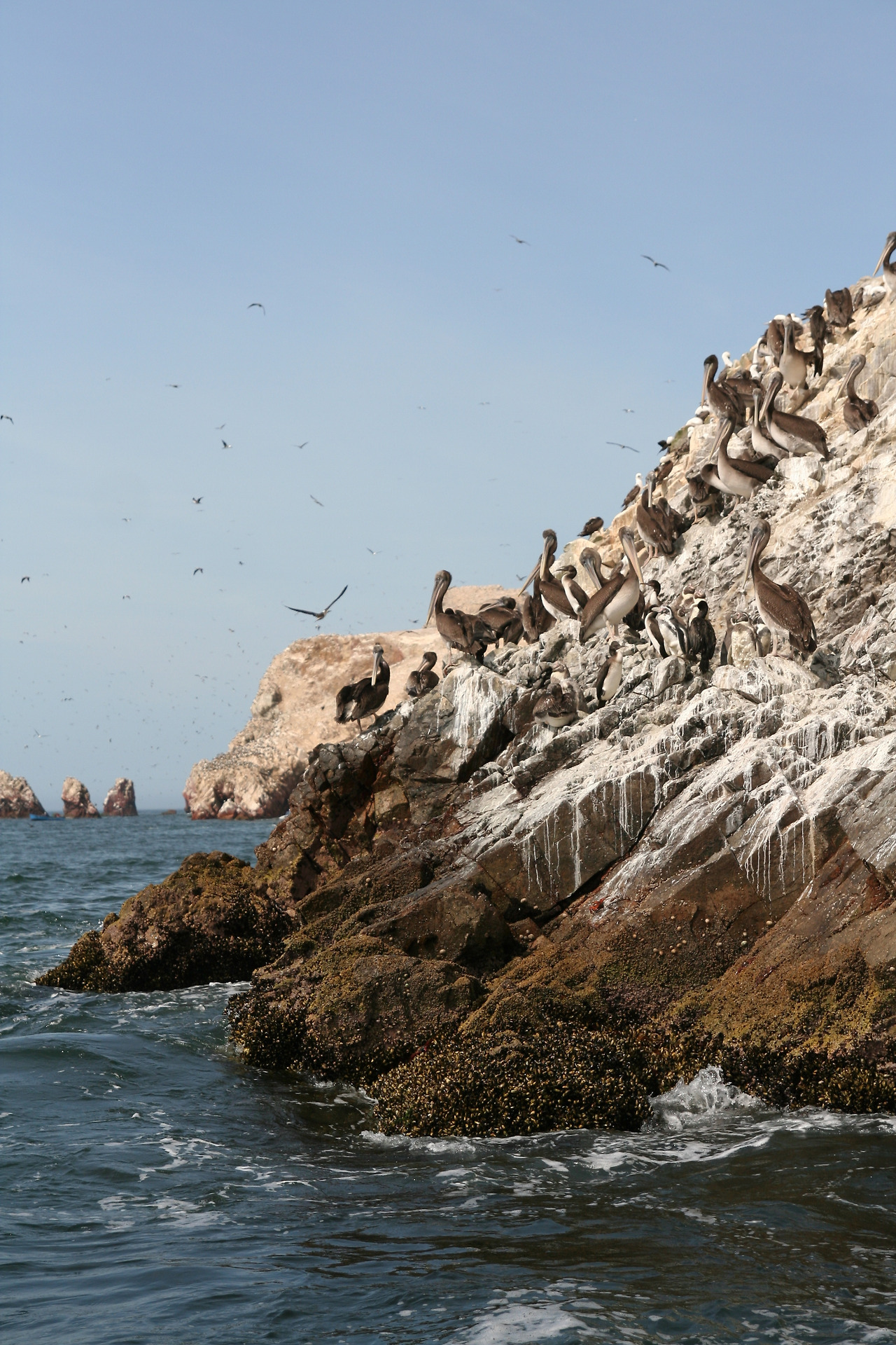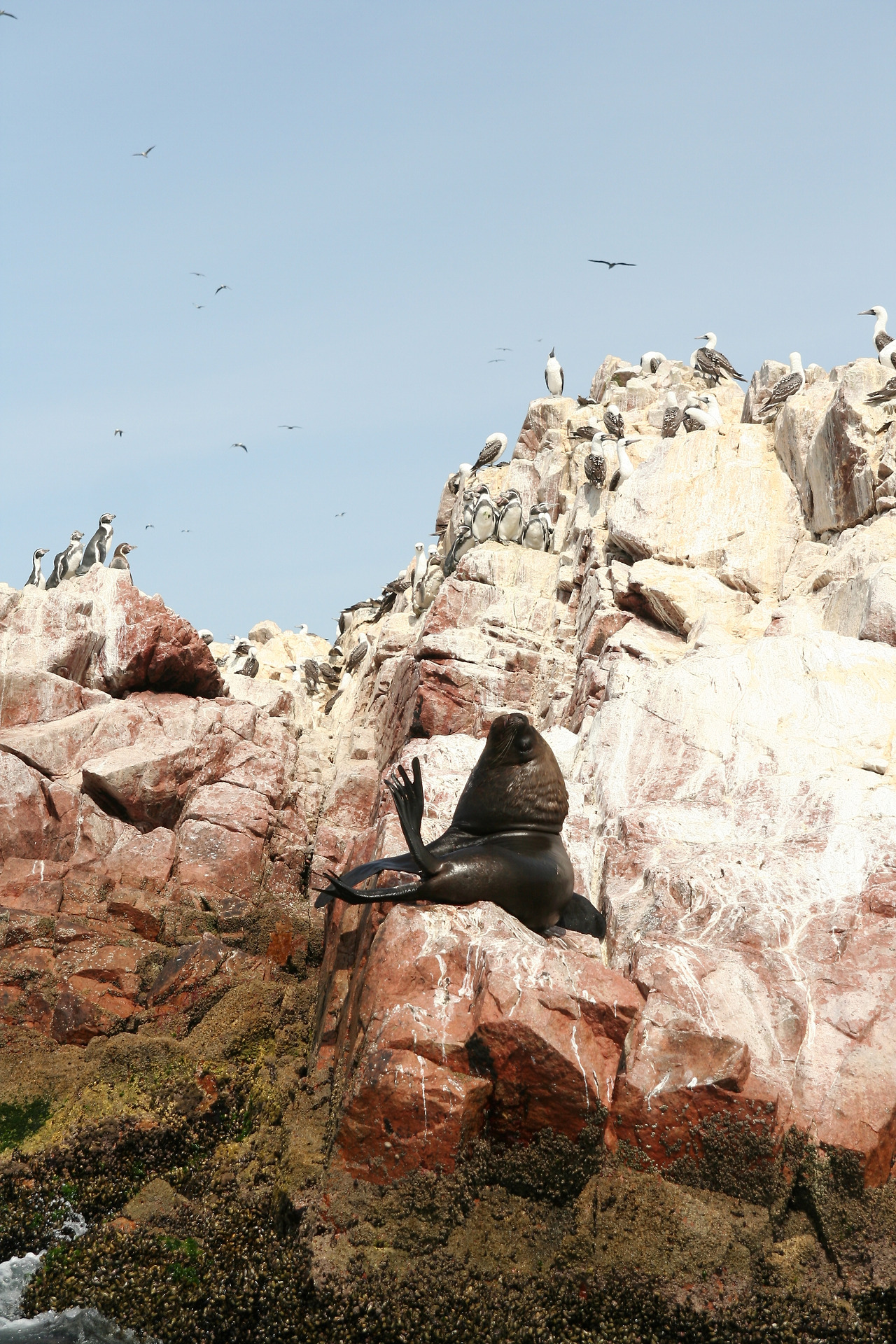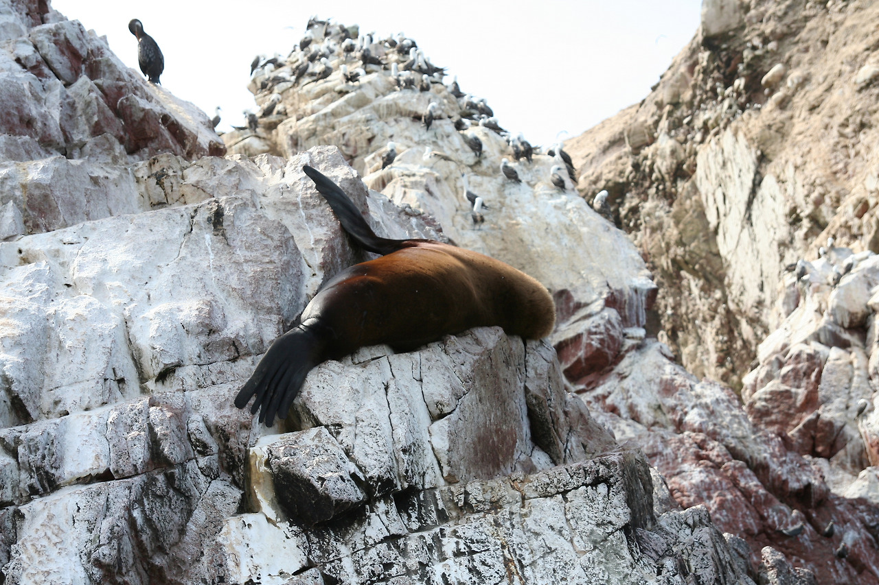 다음 날 리마 방향으로 향하는 중에 피스코에 들러 바예스타스섬을 돌아보는 보트 투어를 했다. '가난한 자를 위한 갈라파고스'로 불리는 바예스타스는 다양한 생물 종이 보존되어 있는 것은 갈라파고스와 같지만 비용과 시간이 적게 들어서 그렇게 불린다고 한다. 투어 보트가 인원을 다 채우자 물살을 가르며 신나게 출발한다. 30분 정도를 달려 다양한 새들과 펭귄, 물개, 바다사자 등의 천국에 도착해 모터를 끄고 조용조용 섬 주위를 돌며 수많은 종류의 동물들을 만났다. 유독 이곳에 얘들이 몰리는 이유는 먹을 것이 풍부하기 때문이다. 페루 앞바다는 적도 부근임에도 차가운 해수가 올라오는 라니냐 현상의 영향으로 영양이 풍부하고 남극 펭귄과 바다사자까지 올라와 살 수 있는 환경이라고 한다. 징그러울 정도로 많은 새들과 사람이 가까이 와도 전혀 의식하지 않는 바다 생물들을 만나며 그들이 구경거리인지 우리가 구경거리인지 분간이 되지 않는 느낌이었다.