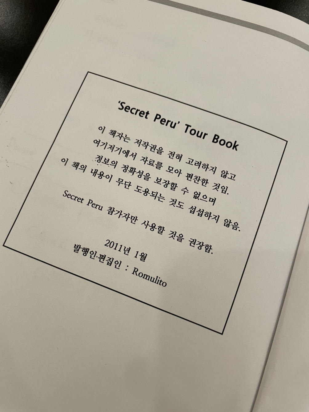 왜 제목을 ‘Secret Peru’로 했었는지 잘 기억이 나진 않지만 술자리에서 이 여행의 타이틀을 그리하자고 했던 것 같다. 우리 삶에 비밀처럼 기억될 좋은 추억으로? 주위 사람들 몰래 후딱 다녀오자고? 뭐 여러 뜻이 담겨있었던 것 같다.
