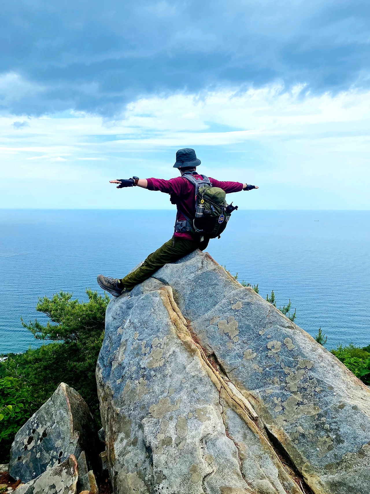 이번 길은 산을 향해 뻗은 오르막으로 시작한다. 산길을 오르고 올라 숨이 가빠질 무렵 아득한 수평선이 숲을 향해 넘칠 듯 펼쳐진다. 누군가 일부러 설계해 놓기라도 한 듯 적당한 오르막과 내리막이 걷는 내내 반복된다. 방울처럼 하얗게 매달린 때죽나무 꽃향기를 맡으며 길을 지났다 싶으면 어느새 짙은 솔향이 숲에 그득하다. 울쑥불쑥 솟은 바위에 올라 오월의 바람을 한껏 들이켜 가슴을 부풀린다. 산정에 너르게 깔린 데크에 등허리를 펴고 누워 해풍에 흐르는 구름을 본다. 땀에 젖은 얼굴에 후둑 빗방울이 떨어진다. 산과 바다를 따라 걷는 길 위에서 나는 자유롭다. 작은 해변에 몸을 누일 자리를 마련하고 함께 걷는 길동무들과 먹고 마시고 떠들다 잠이 든다. 파도소리 빗소리 옆 텐트의 코 고는 소리를 들으며 자다 깨어 아침을 맞는다. 오늘따라 유난히 맑은 하늘의 여명 너머로 선명한 해가 뜬다. 오늘 다시 현재를 만끽하러 떠난다.