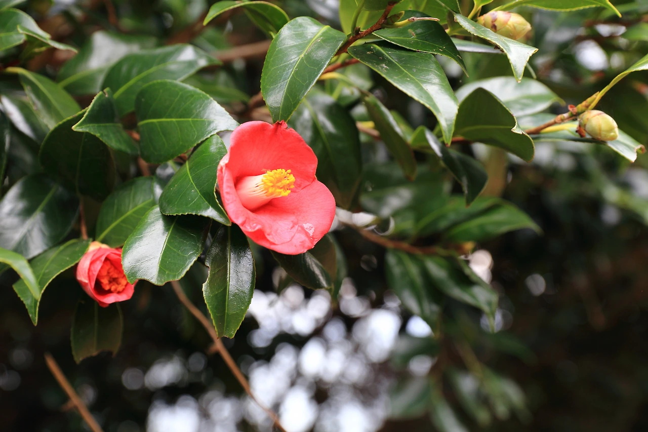 시간의 여유가 생겼다는 생각에 잠시 잠이 들었다. 깨어 보니 오후 3 시다. 소매물도에서 등대섬으로 가는 바닷길이 갈라지는 시간이 오후 2 시부터 7시라고 했으니 제한된 시간에 다녀와야 한다. 섬을 일주하는 길을 택했다. 봄에 다녀왔던 지심도처럼 이 섬에도 동백이 지천에 깔렸다. 때를 잊은 동백꽃이 드문드문 매달렸고 더러는 떨어져 내렸다. 구실잣밤나무와 물푸레나무과의 광나무 그리고 자작나무과의 소사나무가 해안을 따라 난 좁은 길을 사이에 두고 섞였다. 동백이 피는 동안 다른 나무들은 단풍이 물들어 섬에서는 계절의 구분이 모호했다.
