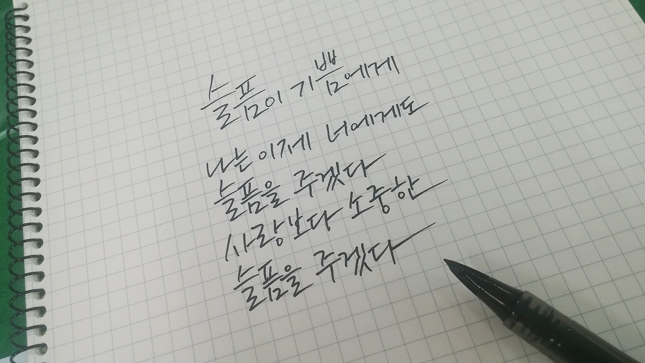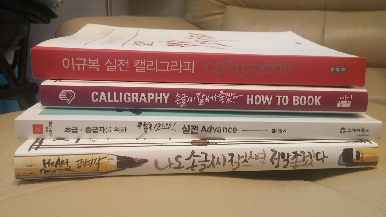 스스로 글씨가 정갈하거나 아름답다고 생각해 본 일이 없던 내가 캘리그래피에 대한 글까지 쓰게 될 줄은 몰랐다. 누군가 내 메모를 보고는 '글씨가 예쁘네'라고 말했고 귀가 얇은 나는 그 한 마디에 용기를 얻어 손글씨를 쓰기 시작했다. 관심을 갖고 보니 인스타그램이나 블로그 등 각종 SNS에 많은 사람들의 손글씨가 올라와 있었다. 감성을 자극하는 글귀와 내용에 어울리는 캘리그래피를 보고 나는 단박에 몰입했다. 처음엔 캘리그래피라는 용어 자체가 생소했는데 펜글씨를 예쁘게 쓰는 정도로 생각했다. 무슨 취미를 하던 장비부터 구입하는 '장비병' 환자인지라 갖가지 펜과 노트부터 구매했다. 그리고 남들이 써 놓은 멋진 글씨들을 무작정 따라 쓰기 시작했다.