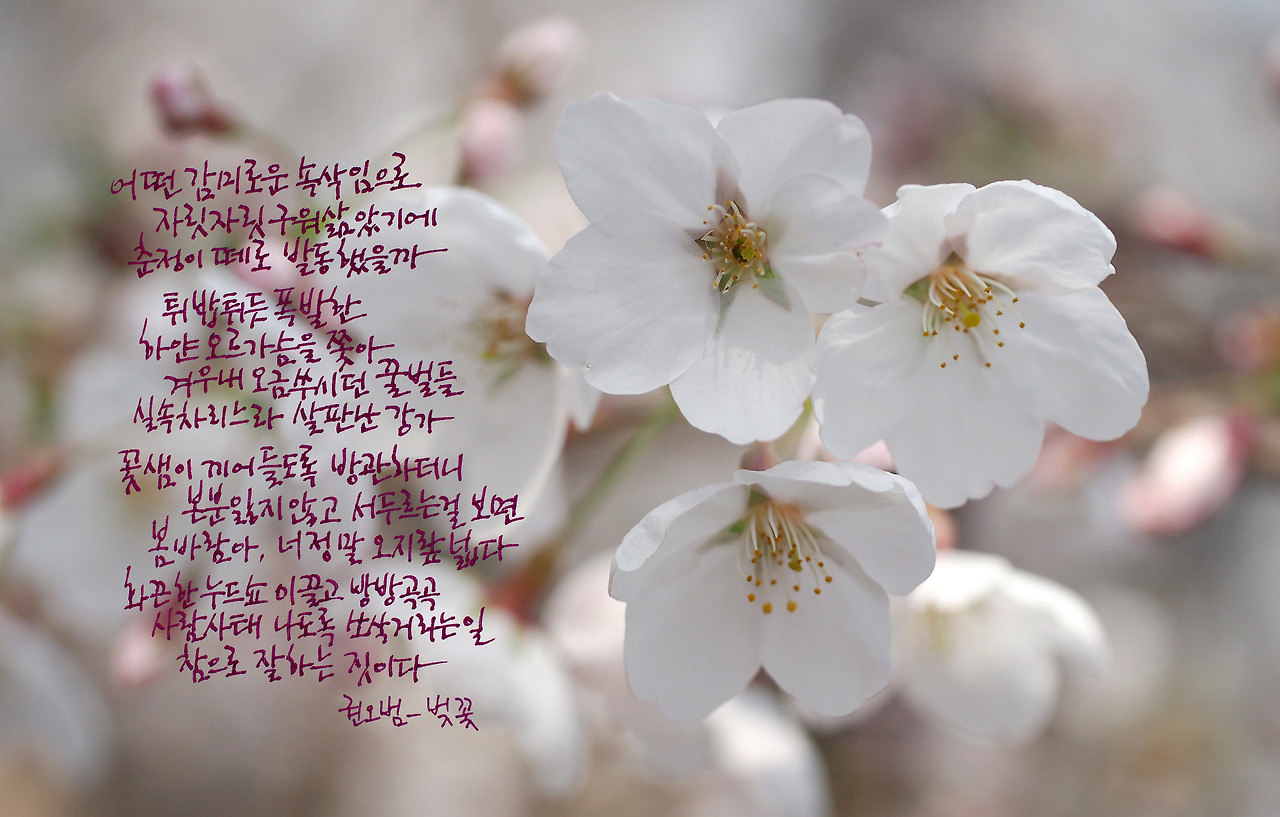 어느 정도 글씨에 자신이 붙었을 때 카카오스토리 등 SNS에 글씨를 스마트폰으로 찍어 올려 봤더니 지인들의 반응이 칭찬 일색이었다. 생일을 맞은 가족이나 지인에게 축하 메시지를 손글씨로 써서 보내 주면 디지털 세상에 접하기 어려운 아날로그 감성에 자극받은 상대방은 평소보다 두 배 이상의 감사 인사를 전해 왔다. 독서를 하다가 가슴에 와서 박히는 내용들을 노트에 필사를 해 두면 머리에 오래 남았다. 그렇게 써 놓은 내용들은 글쓰기를 할 때 인용하기도 했고, 스캔하여 찍어 둔 사진에 합성하면 씨너지 효과로 글씨와 사진이 모두 돋보였다.