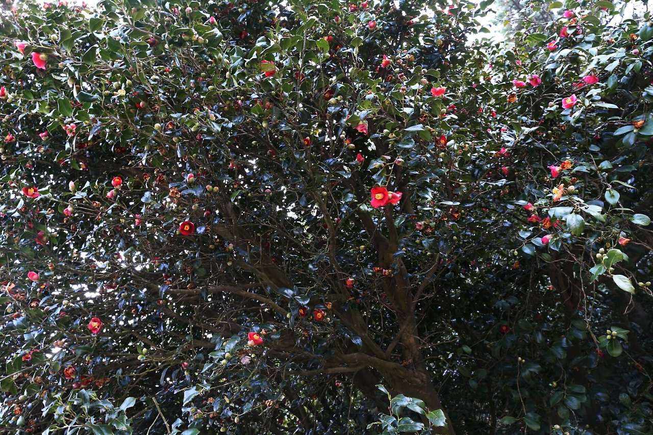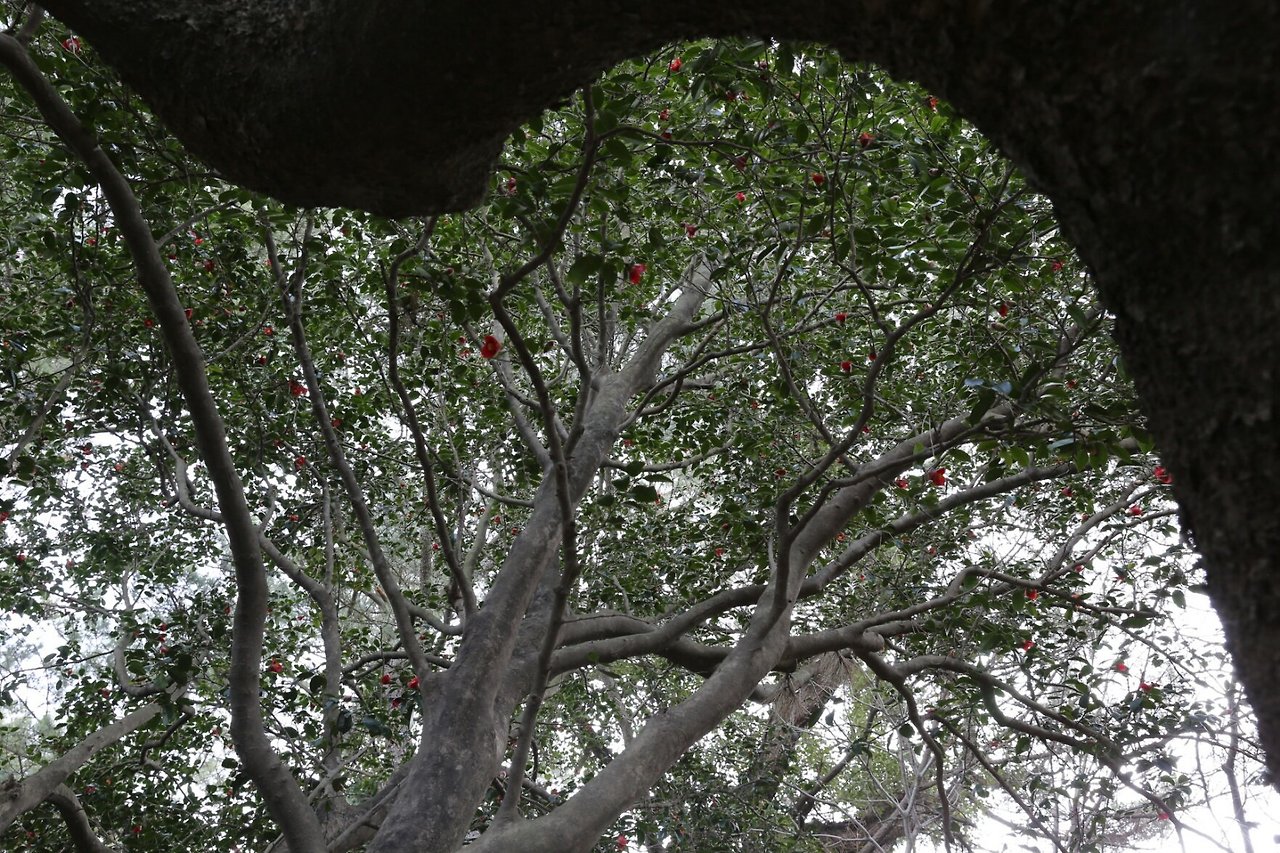 구미에서 차로 두어 시간이면 닿을 수 있는 남해바다의 풍광은 경북지방과 사뭇 달랐다. 백매화 홍매화가 다투 듯 피어났고 온 산이 봄기운을 잔뜩 머금은 채 사춘기 소녀의 볼처럼 부풀어 올랐다. 나무들은 발 뒤꿈치를 들어 먼 바다로부터 훈풍이 불어오기를 조바심했다. 거제 장승포항에서 잠깐 졸다 보면 닿을 거리의 지심도. 섬을 하늘에서 내려다 보면 마음 심心 자를 닮았대서 지심도라 부른다. 해송, 후박나무, 팔손이 등 남쪽 땅에서 자생하는 나무들이 빼곡한데, 그 중 70%가 동백이다. 해가 덜 드는 곳엔 동백꽃이 아직 피지 못했고, 해가 잘 드는 남쪽에는 동백이 피고지기를 반복하거나 빼곡하게 피었다.