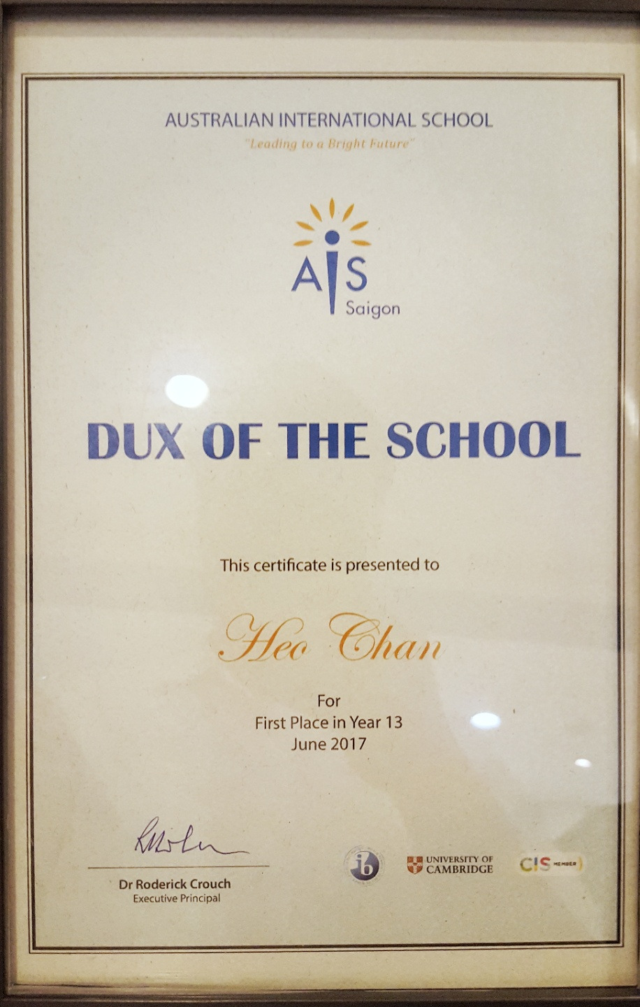 큰아이는 어려서 한국을 떠난 탓에 깊은 친구 하나 없이, 외려 해외나 마찬가지인 서울에서의 대학생활에 적응해 갔다. 공부하기 싫으면 한국학교로 가서 졸업만 하라는 아빠의 겁박(?)을 받던 작은 아이는 의외의 성적으로 졸업을 했다. IB DIPLOMA 전과목 만점으로 DUX AWARD를 수상하며 전교 수석으로 졸업식 메인이벤트의 주인공이 됐다. 이삿짐을 싸기 위해 짬을 내서 날아갔다가 참석한 졸업식에서 아들의 성적 최우수상 수상은, 그간의 기러기 생활을 보상받는 듯했다.