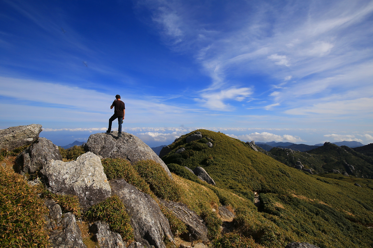 원숭이들은 양지바른 곳에 모여 앉아 서로의 몸을 다듬어 주다가 지나가는 사람들을 찬찬히 구경했다. 사슴들은 관목들 사이로 고개만 삐쭉 내밀고는 나뭇잎을 요란하게 흔들며 어디론가 흩어졌다. 한 달이면 35일 비가 내린다는 곳, 늘 태풍이 지나는 길목이라지만 오늘만큼은 날씨가 화창했다. 여행의 성패는 날씨가 절반은 좌우한다더니 축복받은 날이다. 하긴, 비 마저 내렸다면 내가 더 오를 수 있었을까. 식수는 계곡물이나 샘물을 받아먹었고, 준비해 간 간식을 허리춤의 벨트백에서 틈틈이 꺼내 먹었다. 하지만 정작 힘겹게 가져 간 카메라는 꺼내어 찍을 엄두가 나지 않았다. 배낭을 내려 카메라를 꺼내어 사진을 찍고 다시 배낭에 넣는 일을 반복하다가는 일행과의 거리가 너무 벌어지지 않을까 염려됐다. 이러려고 무거운 카메라를 넣어왔나 하는 자괴감이 들었다.