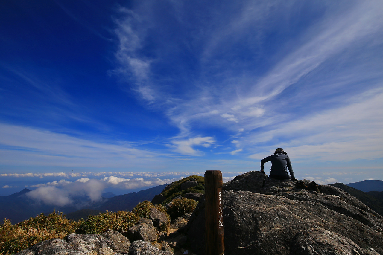 끝나지 않을 듯했던 오르막길은 한 발 한 발 내디디며 걷기를 무한 반복하자 어느덧 야쿠시마에서 가장 높은 곳 미야노우라다케에 이르렀다. 사방에 산봉우리가 솟구쳐 올랐고 뭉게구름이 발아래로 흘렀다. 섬 언저리에서 필리핀해의 파도가 청명한 가을 햇살을 튕겨냈다. 정상에 오르자 성취감보다는 안도감이 들었다. 해외에서의 첫 트래킹에 대한 기대감만큼 두려움도 컸던 모양이다. 다시 내리고 오르기를 반복해서 신다카츠카산장에 도착하자 이미 해가 저문다. 저녁 식사를 위해 모여 앉은자리, 일행 중 가장 늦게 도착한 분에게 자리를 비켜주며 합석을 권했다. 이 여성분이 배낭에서 무엇인가를 꺼내자 모두들 아연실색하며 놀라 자빠졌다. 산행과 생존에 꼭 필요한 물품이 아니라면 단 100그람이라도 줄이려 노력한다는 배낭에서 다름 아닌 '캠핑용 의자'가 나왔기 때문이다.