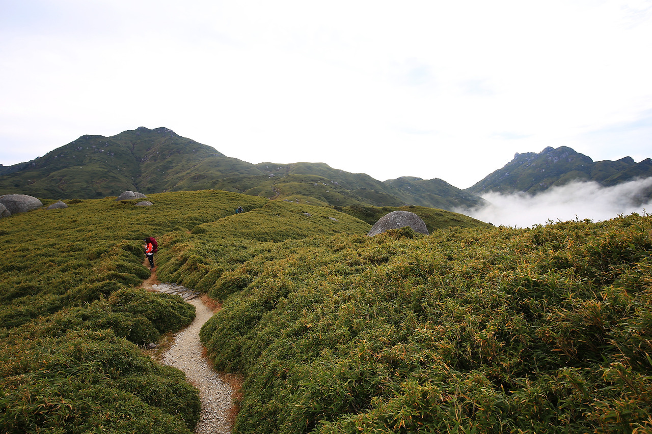 하지만 그 숲에 가기 위해서는 산을 올라야 했다. 대부분의 탐방객들이 시라타니운스이쿄 숲을 당일로 돌아 나오는 코스를 택한다.(현명한 분들이다) 하지만 우리는 숲의 맞은편 요도가와 등산구(1400m)에서 야쿠시마의 가장 높은 곳 미야노우라다케(1936m)를 거쳐 시라타니운스이쿄(600m)로 내려오는 코스를 택했다.(아무래도 우린 좀 모자라는 것 같다) 신다카츠카 산장(1500m)에서 하루를 묵어야 했으므로 숙박에 필요한 침낭과 이틀 치 식량을 배낭에 짊어져야 했다. 나는 거기에 무거운 카메라까지 얹었다.(제정신이 아닌가 보다)