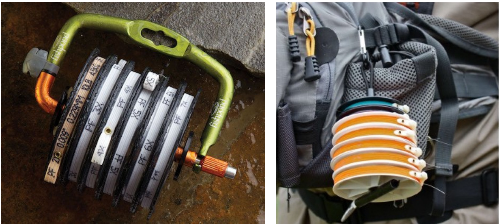 플라이 낚시꾼들을 보면 웬 두루마리? 같은 걸 매달고 다니는 걸 쉽게 볼 수 있는데, 바로 이 티펫이 감겨있는 실패들을 굵기별로 찾아 쓰기 편하게 매달아 놓은 것이다.
