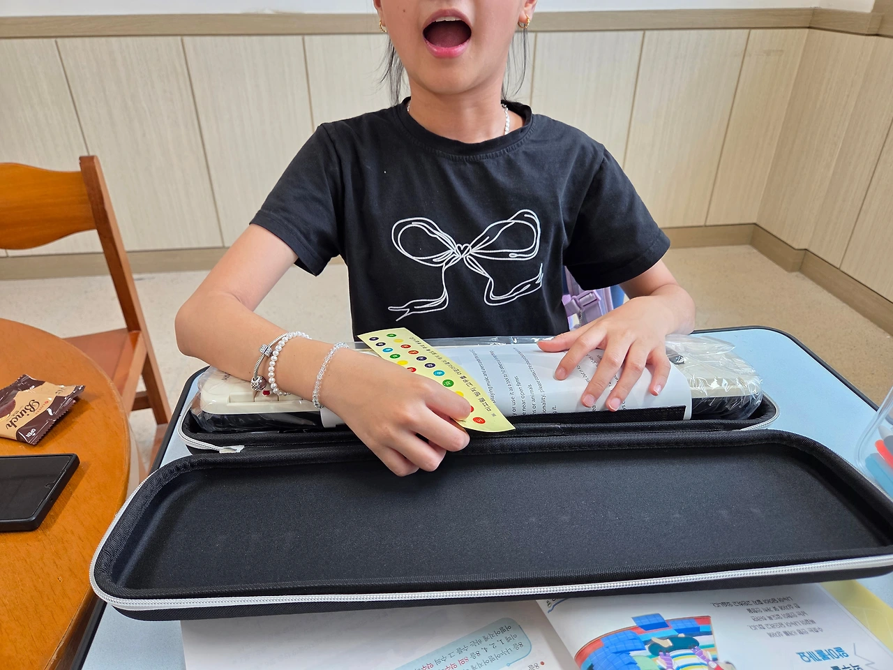 "우와!! 멜로디언이 왔다!! 선생님 감사합니다. 빵아~ 우리가 기다리던 피아노가 왔어. 감사합니다 인사해야지."